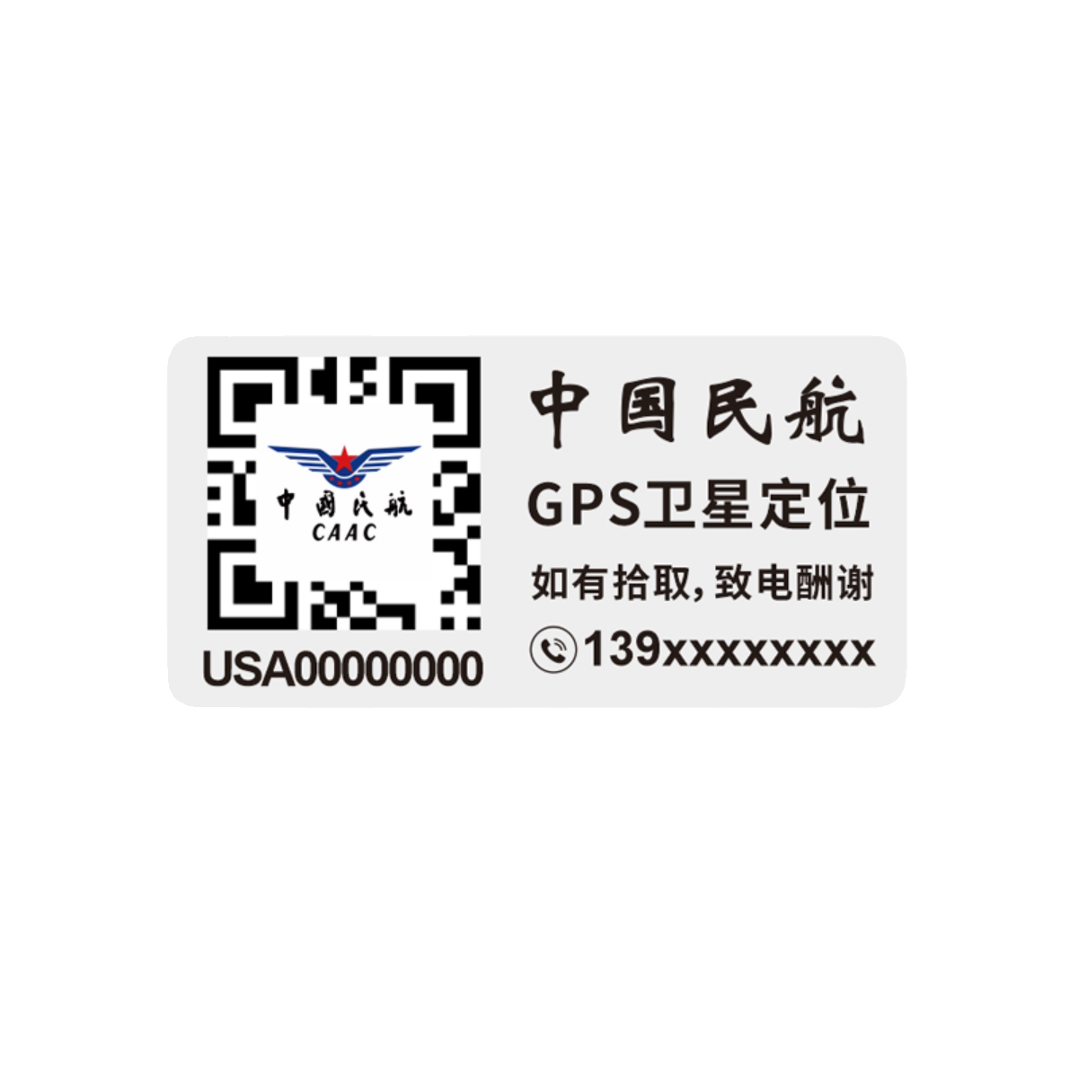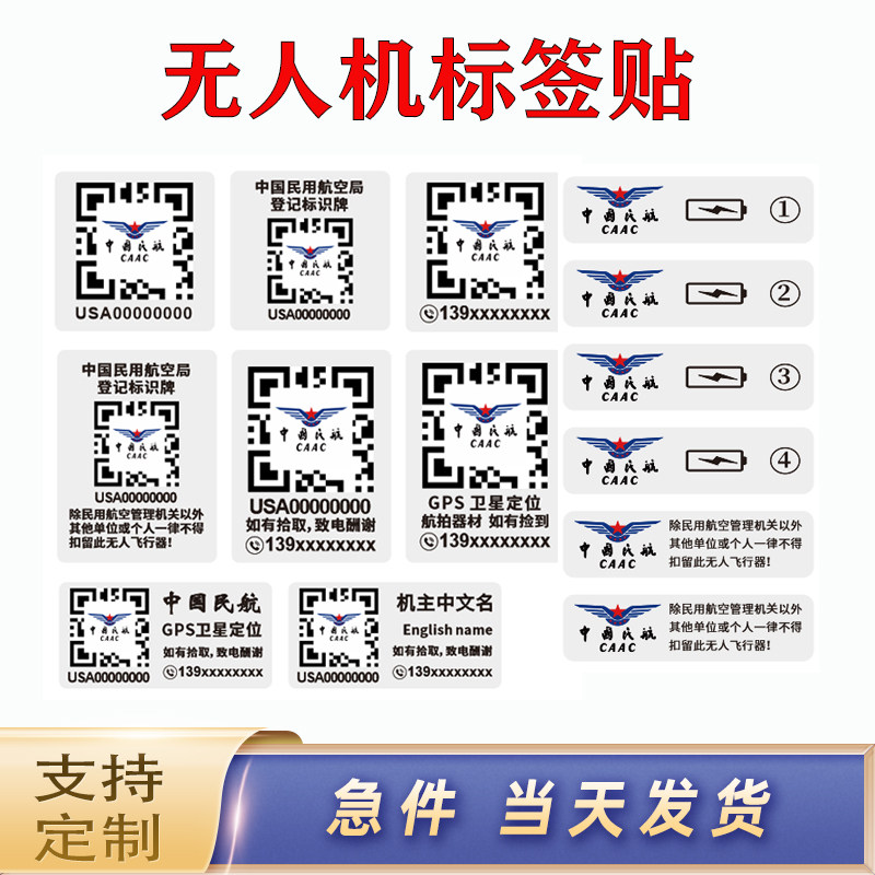 📚 无人机实名登记贴二维码防丢中国民航实名注册电话标签防雨晒贴纸