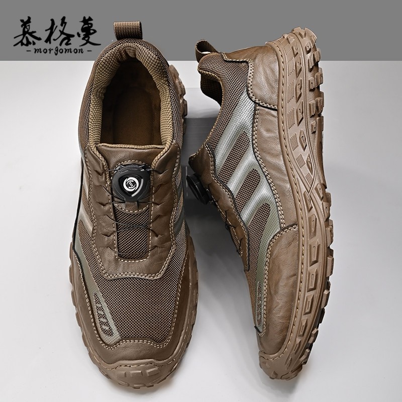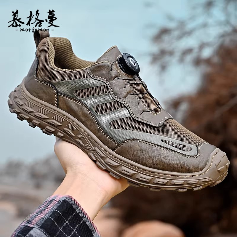 📚 户外登山鞋男款软底旋转纽扣运动鞋透气防撞免系鞋带时尚休闲鞋男