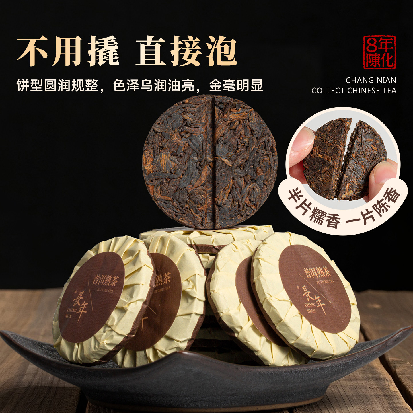 📚 五虎长年普洱茶熟茶茶叶云南熟普洱茶饼新茶年货送礼长辈礼盒装