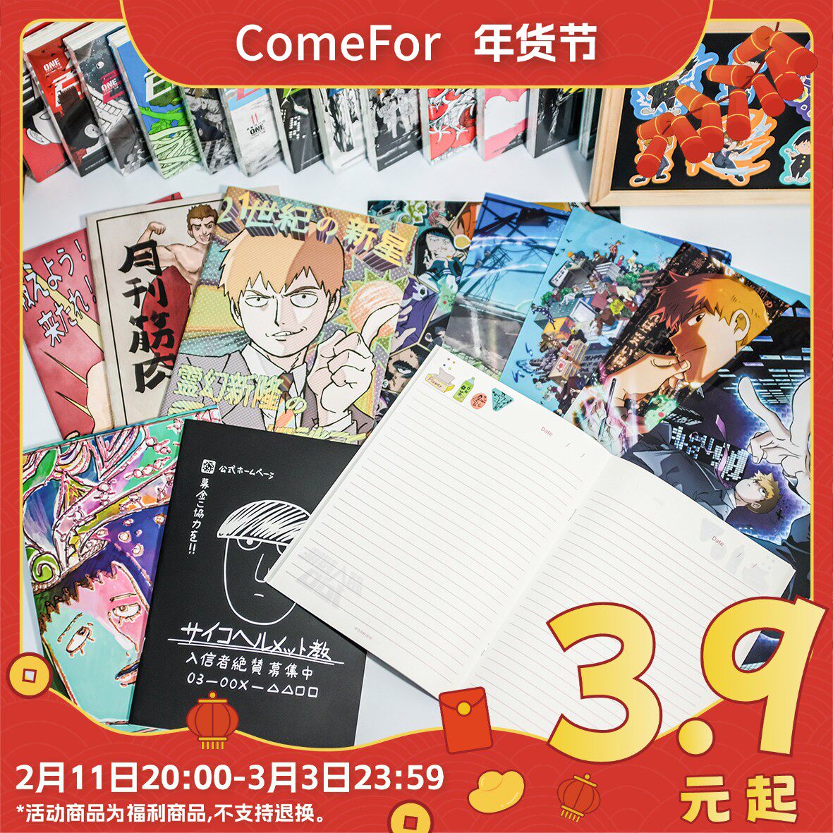 📚 ComeFor灵能百分百正版周边笔记本文件夹和纸贴纸包人物PVC明信片