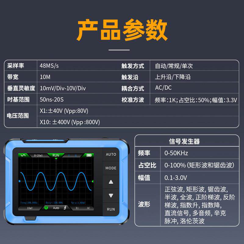 📚 fnirsi示波器手持小型数字可携式示波器DSO-510多功能讯号产生器