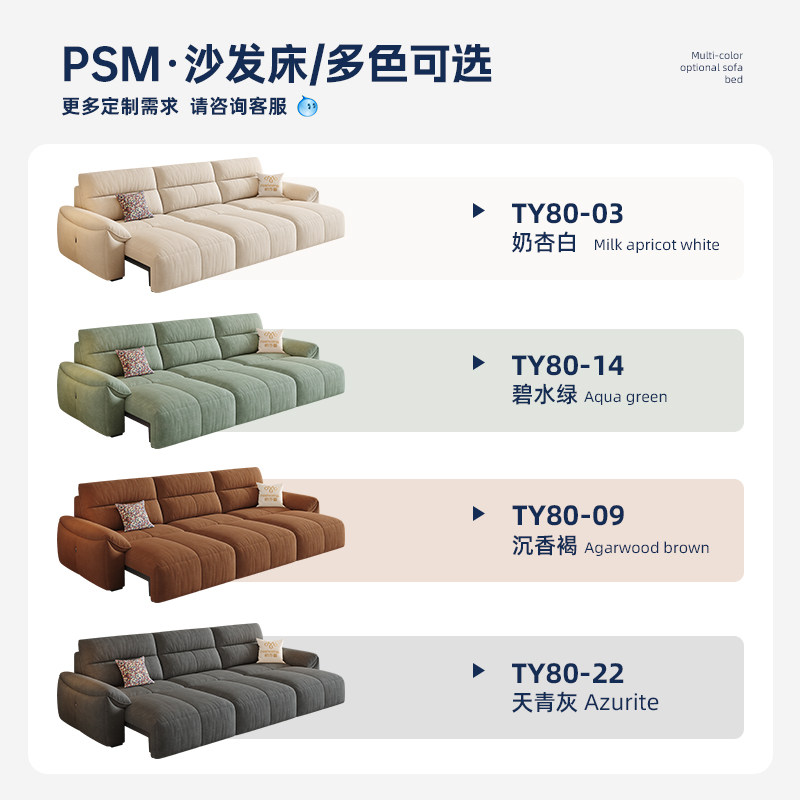 📚 帕沙曼布艺沙发电动功能翻倒几现代简约客厅可折叠伸缩多功能沙发
