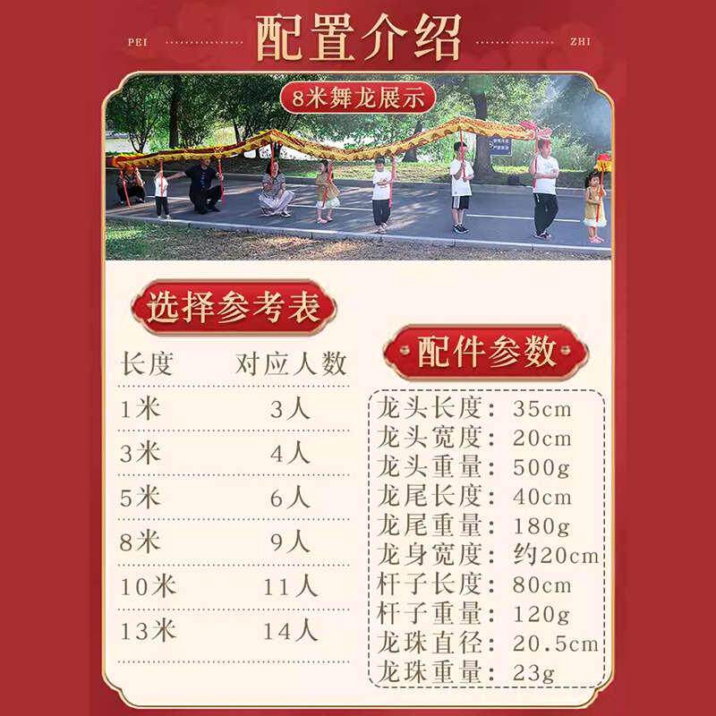 📚 儿童舞龙表演道具传统中国龙新款手持龙幼儿园小学生舞蹈长龙龙身