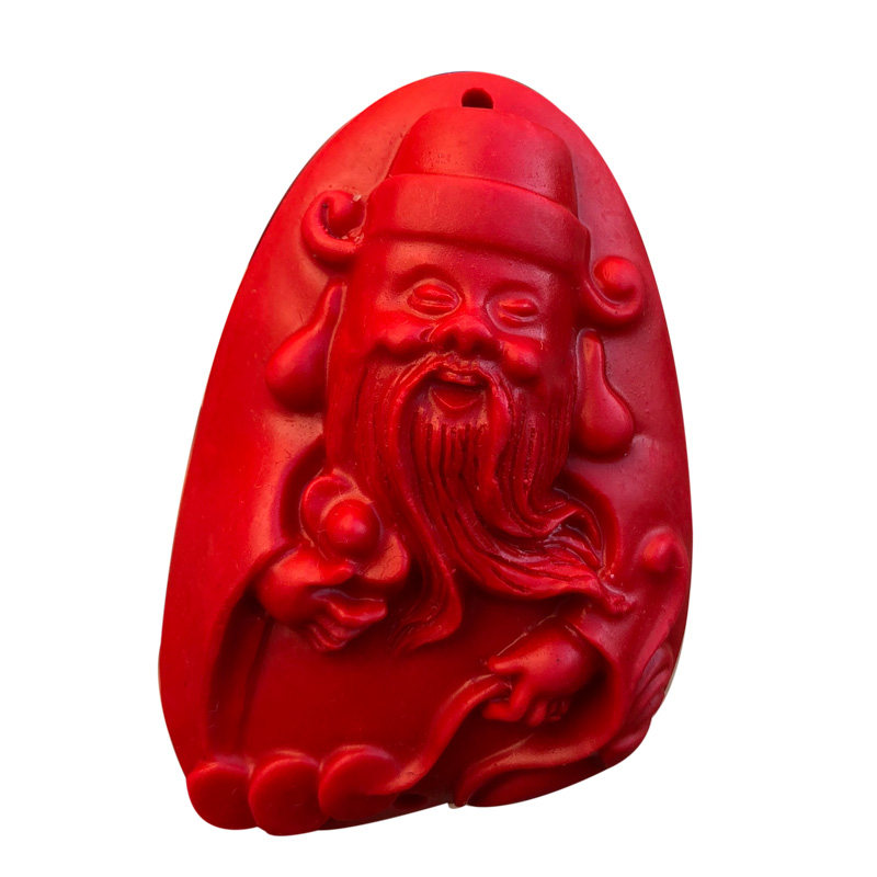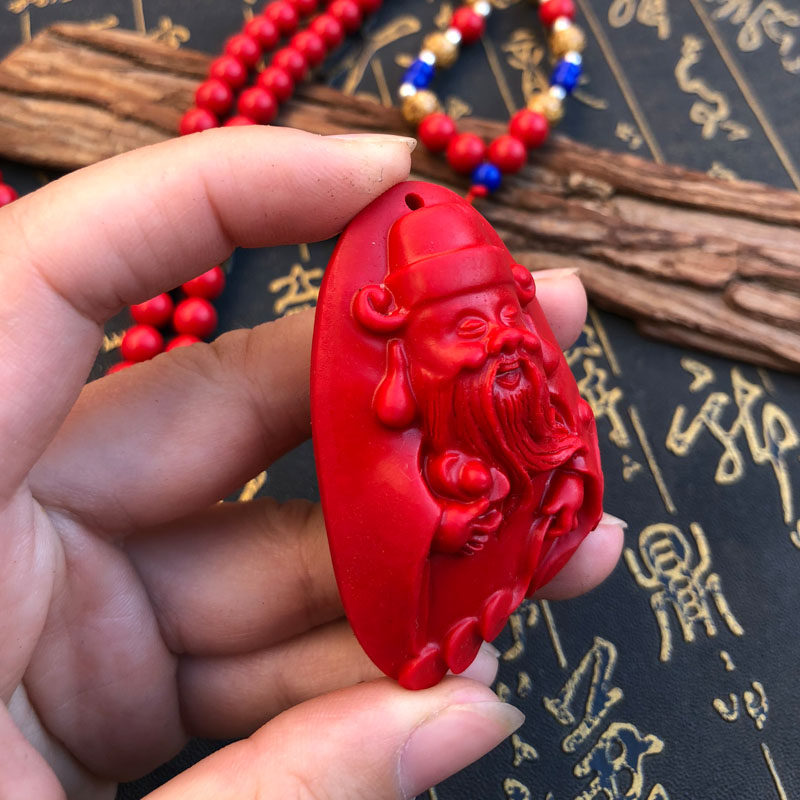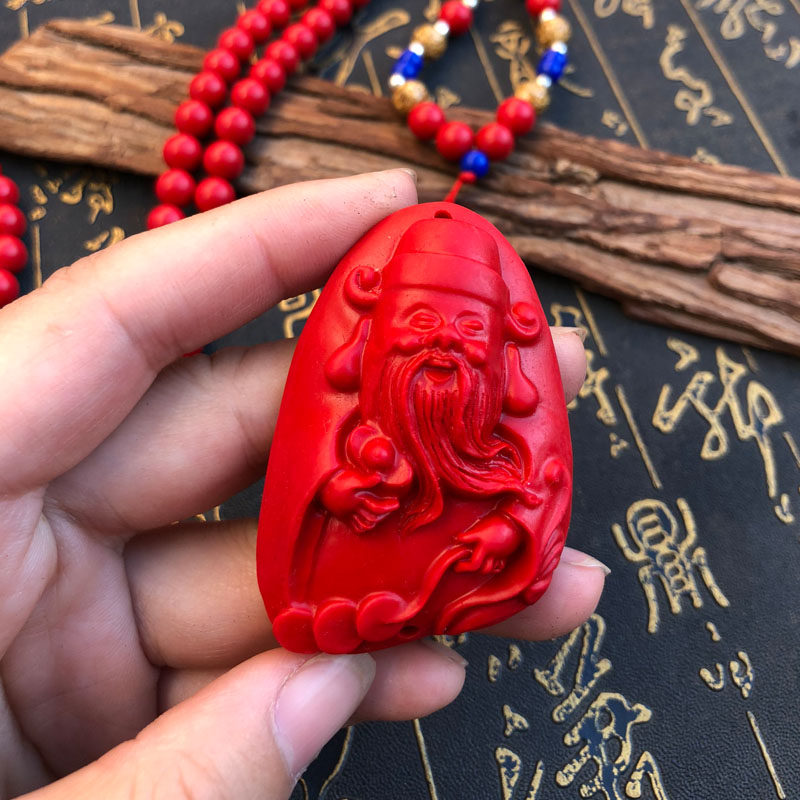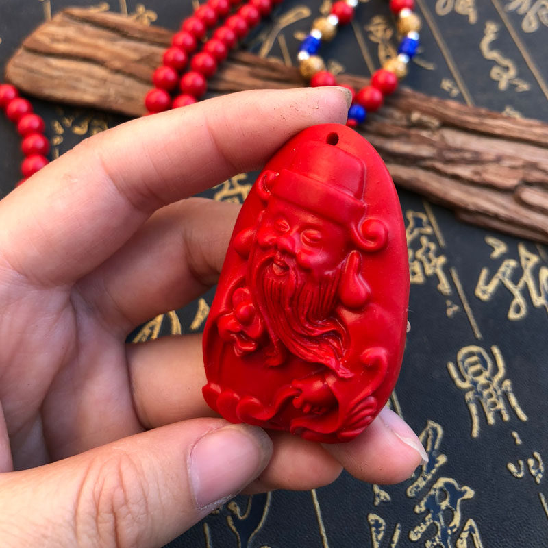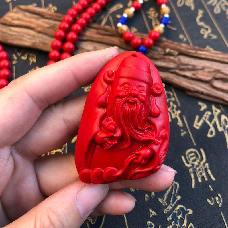 📚 台湾原色朱砂土地财神爷吊坠帝王红招财佛爷项链证书