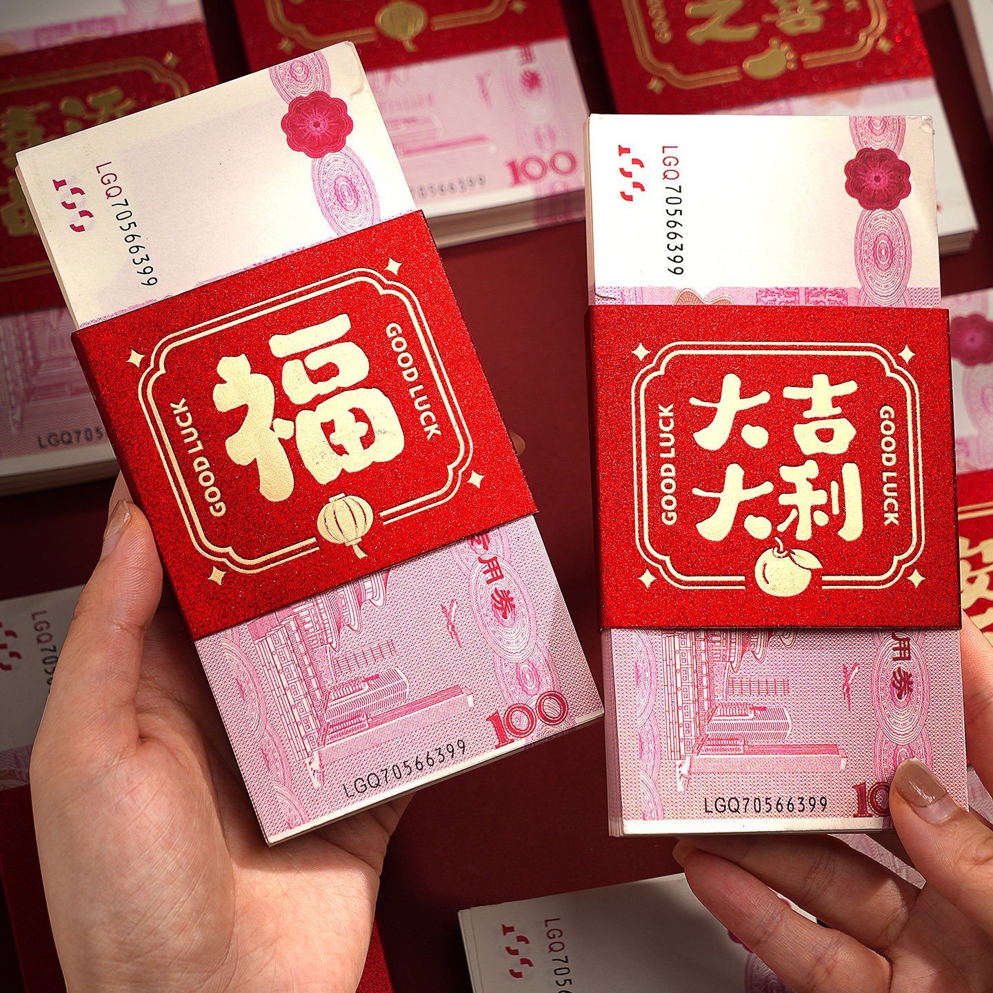 📚 宝宝生日一万元钱套福字钱封捆钱满月之喜专用红包喜钱封条过周
