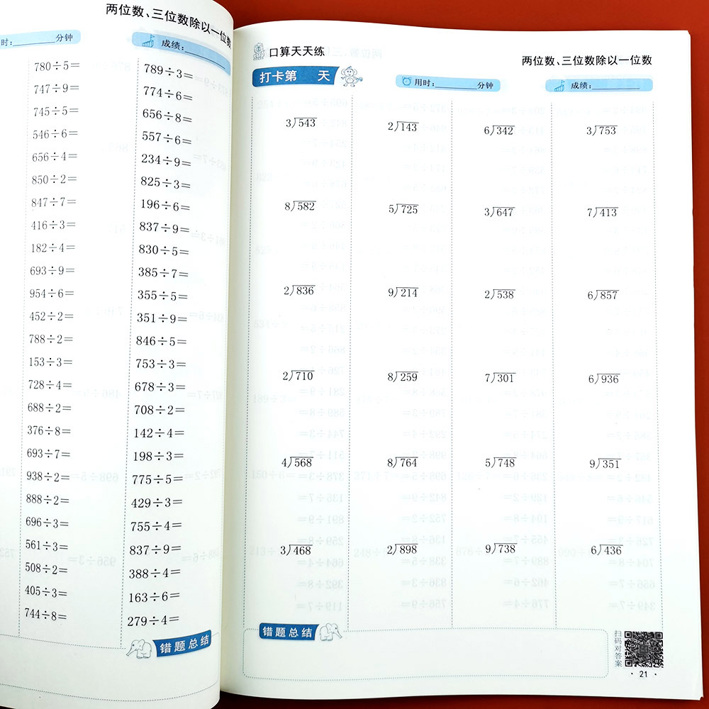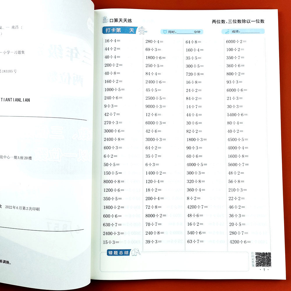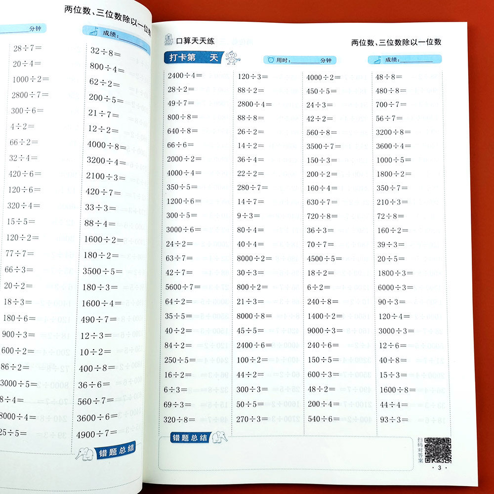 📚 小学两位数三位数除以一位数口算题卡多位数除一位数三年级上下册数学竖式两位数乘两位数万以内加减法计算题强化训练除法专项练习