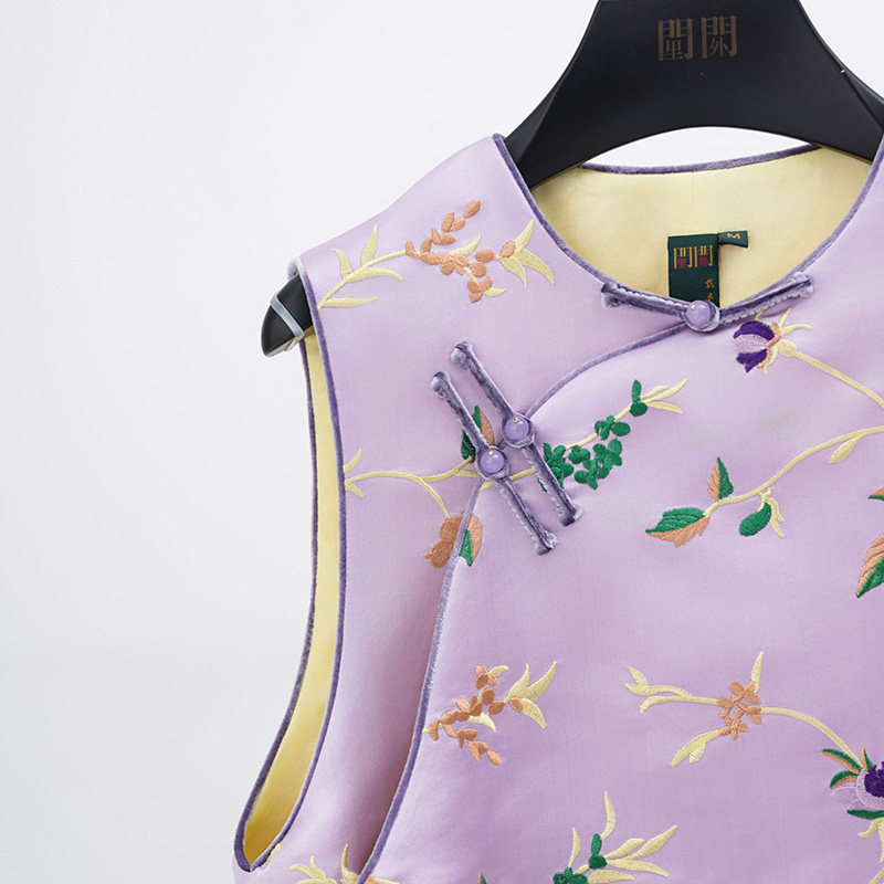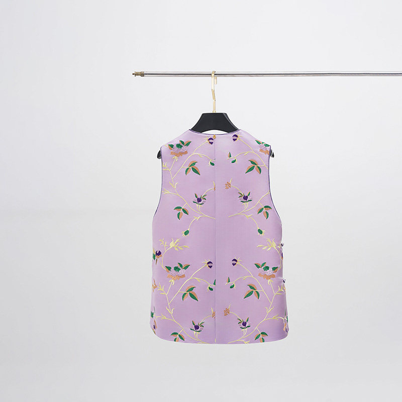 📚 门里门外紫色枝蔓库缎提花马甲BC25QM1114A