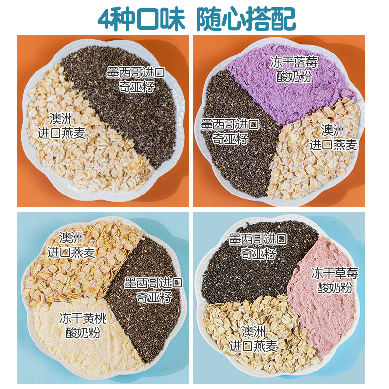 📚 奇亚籽多谷物燕麦片低减无糖精脂营养早餐即食冲饮隔夜麦片食品