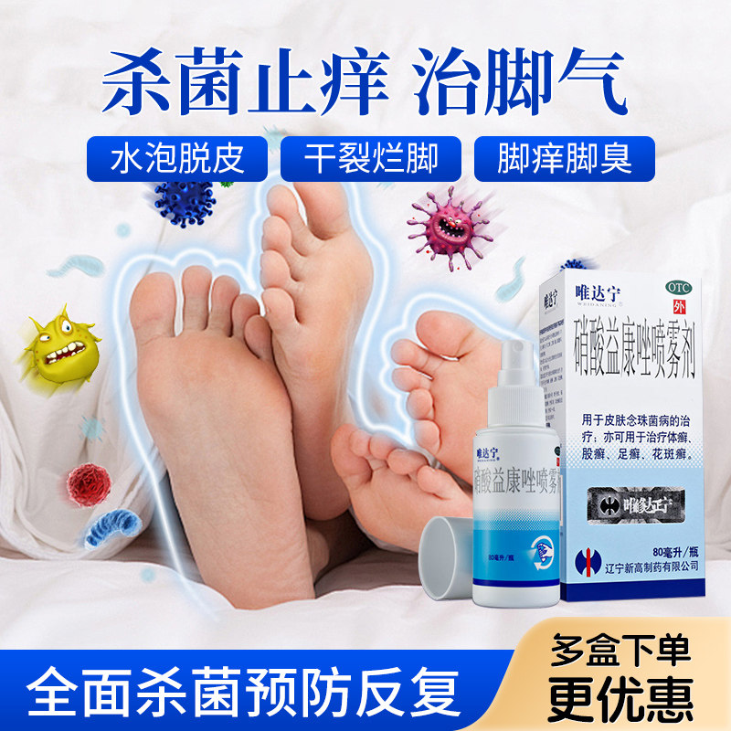 📚 唯维达宁硝酸益康唑喷雾剂治脚气止痒脱皮杀菌烂脚丫真菌感染水泡