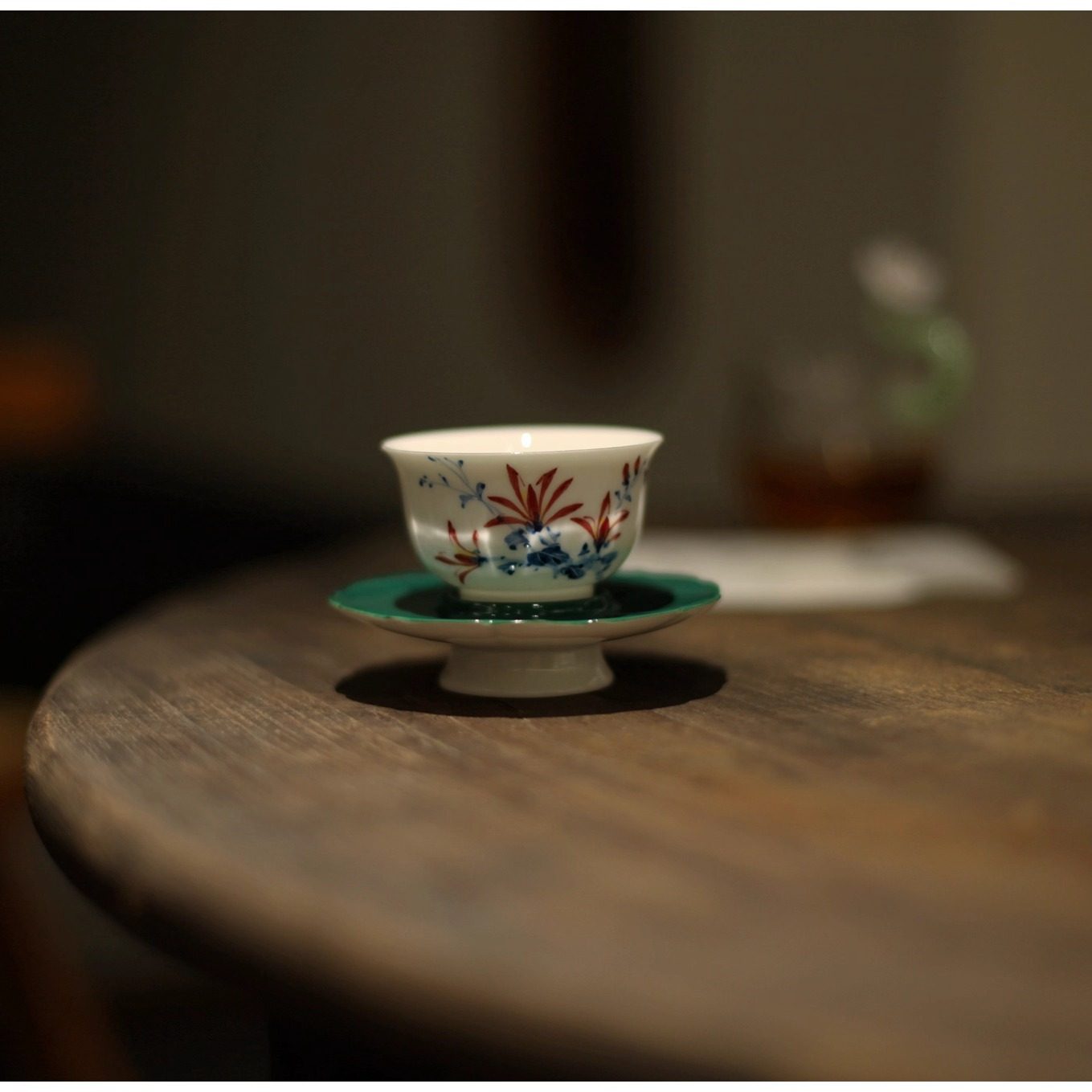 📚 |梅似雪|《蓝彩幽兰》茶杯主人杯 客杯 盖碗釉下彩景德镇手绘兰花