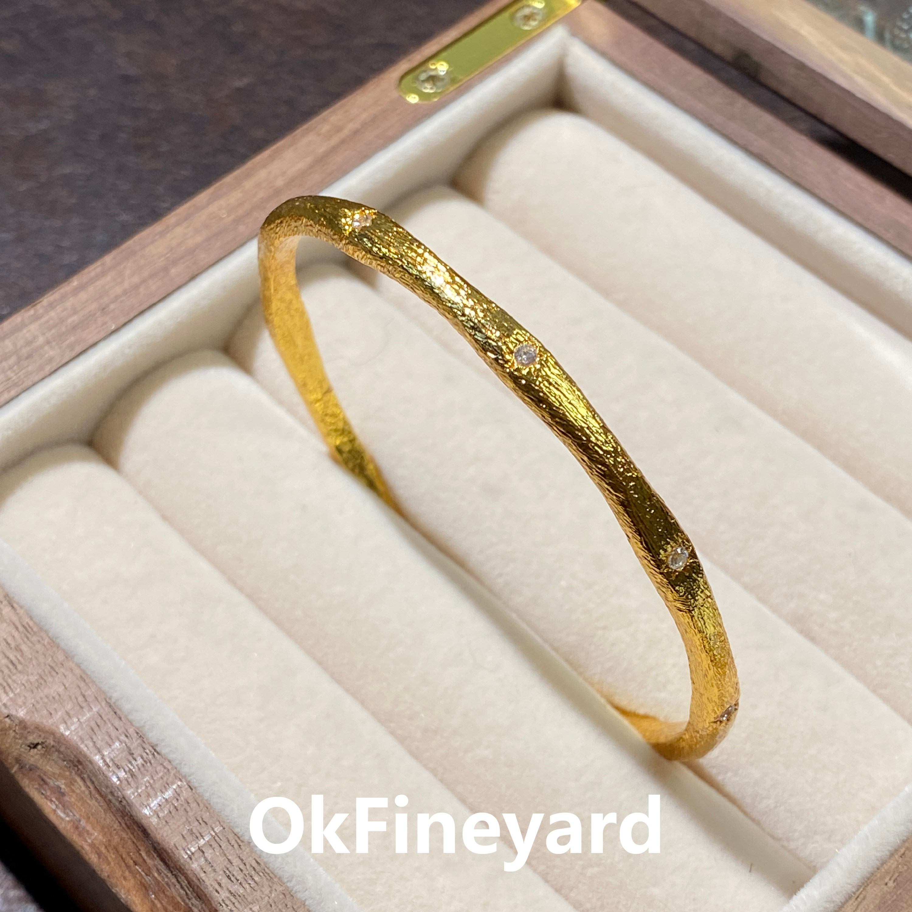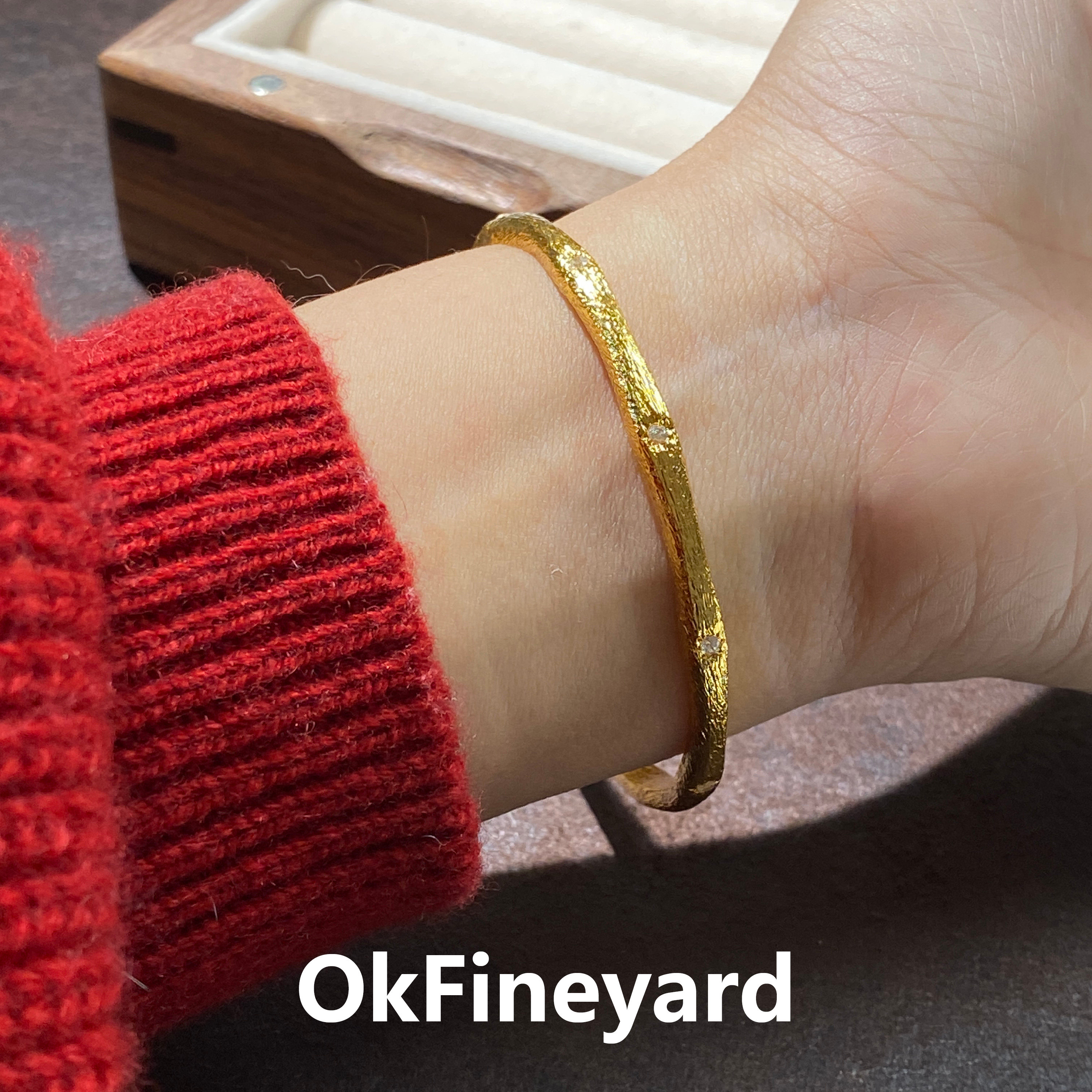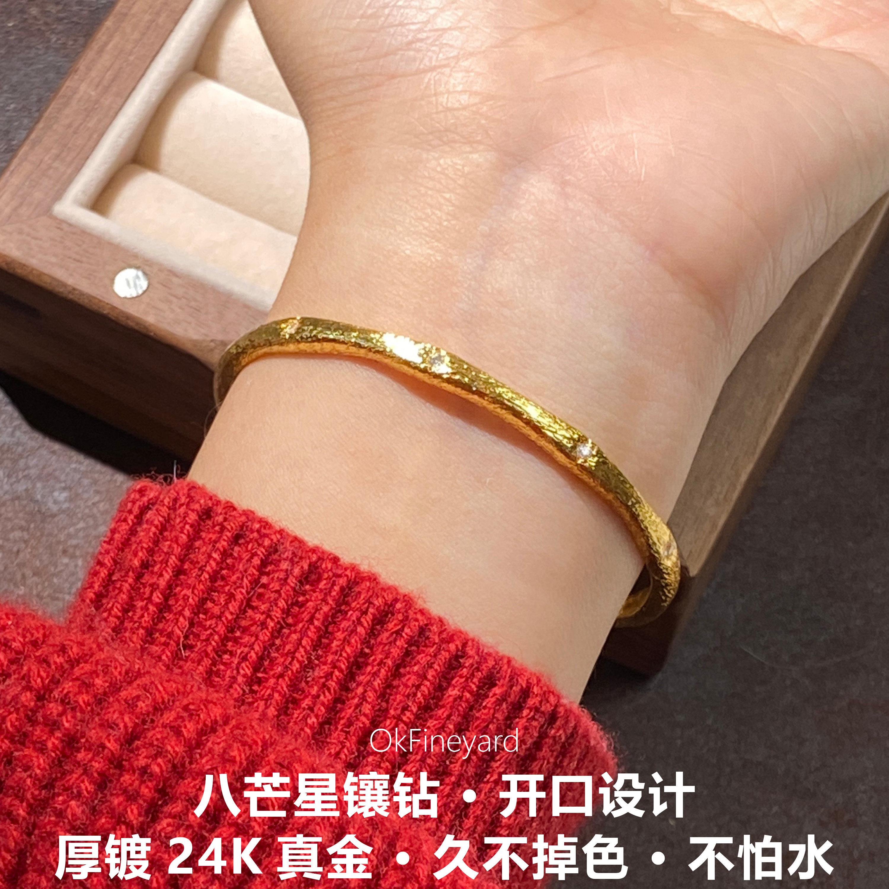 📚 OkFineyard八芒星镶钻拉丝开口手镯女久不掉色轻奢高级感金色手饰