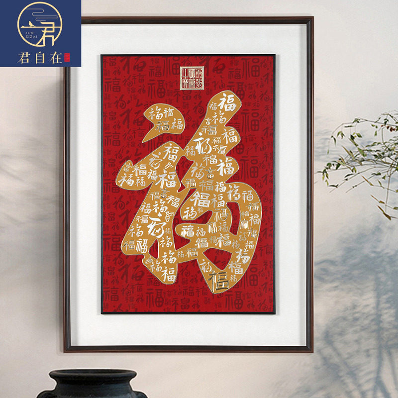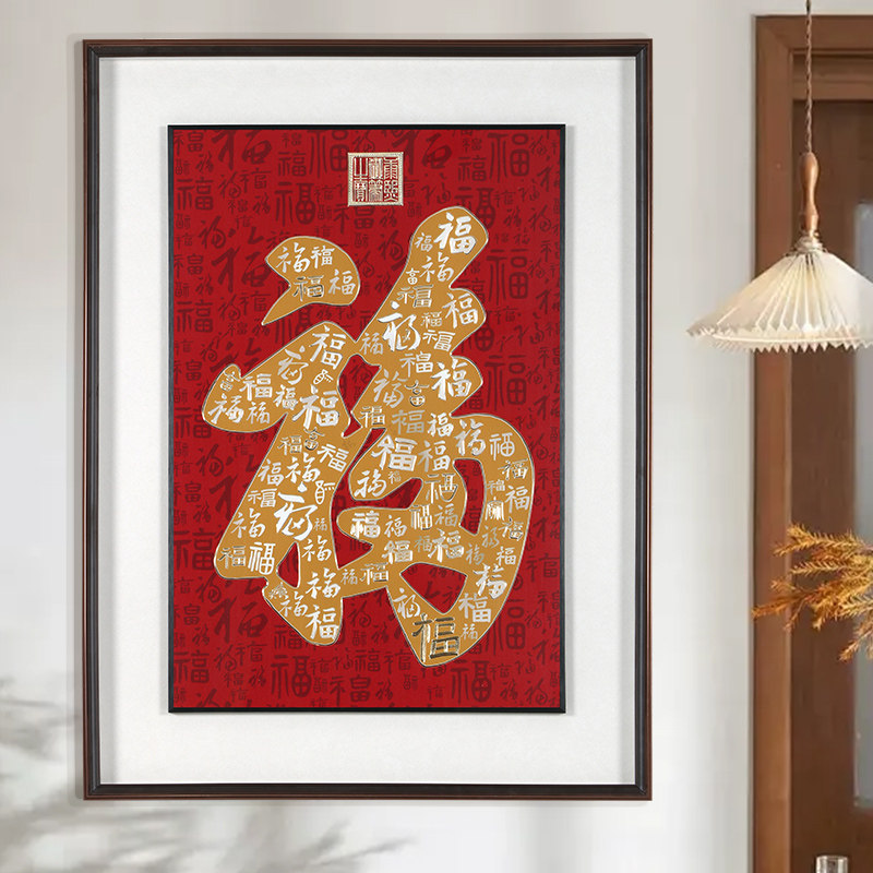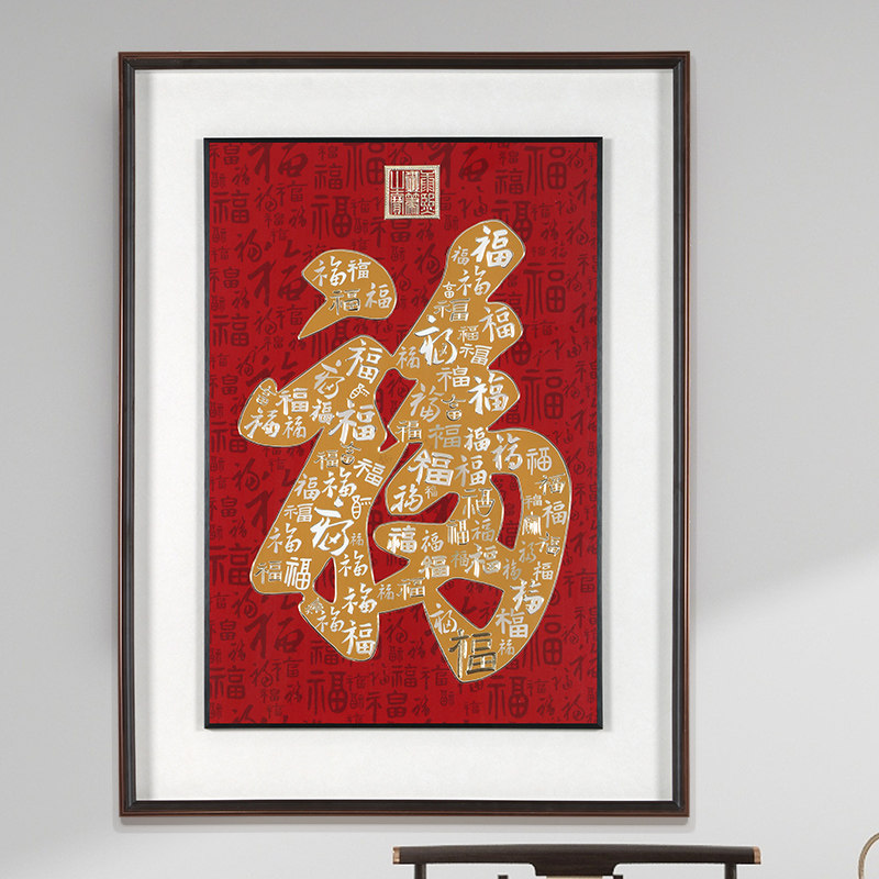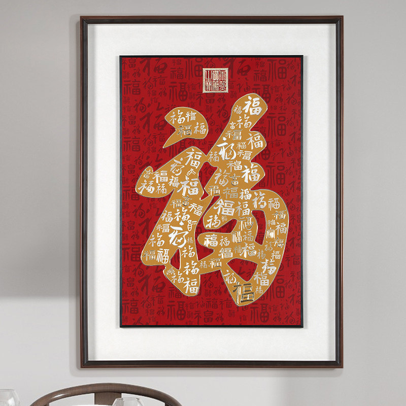 📚 天下第一福手工铜雕装饰画新中式玄关走廊餐厅背景墙寓意好百福图