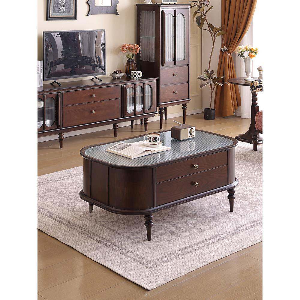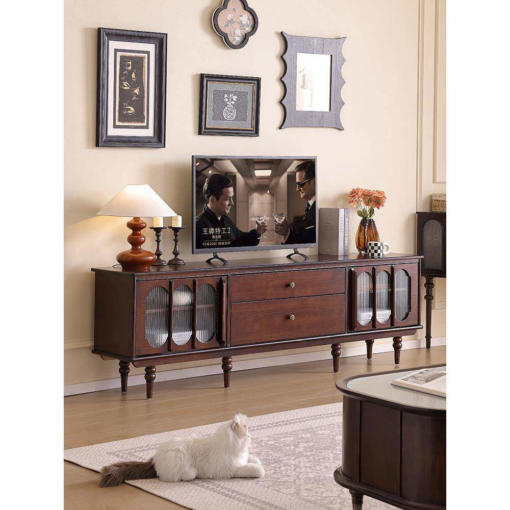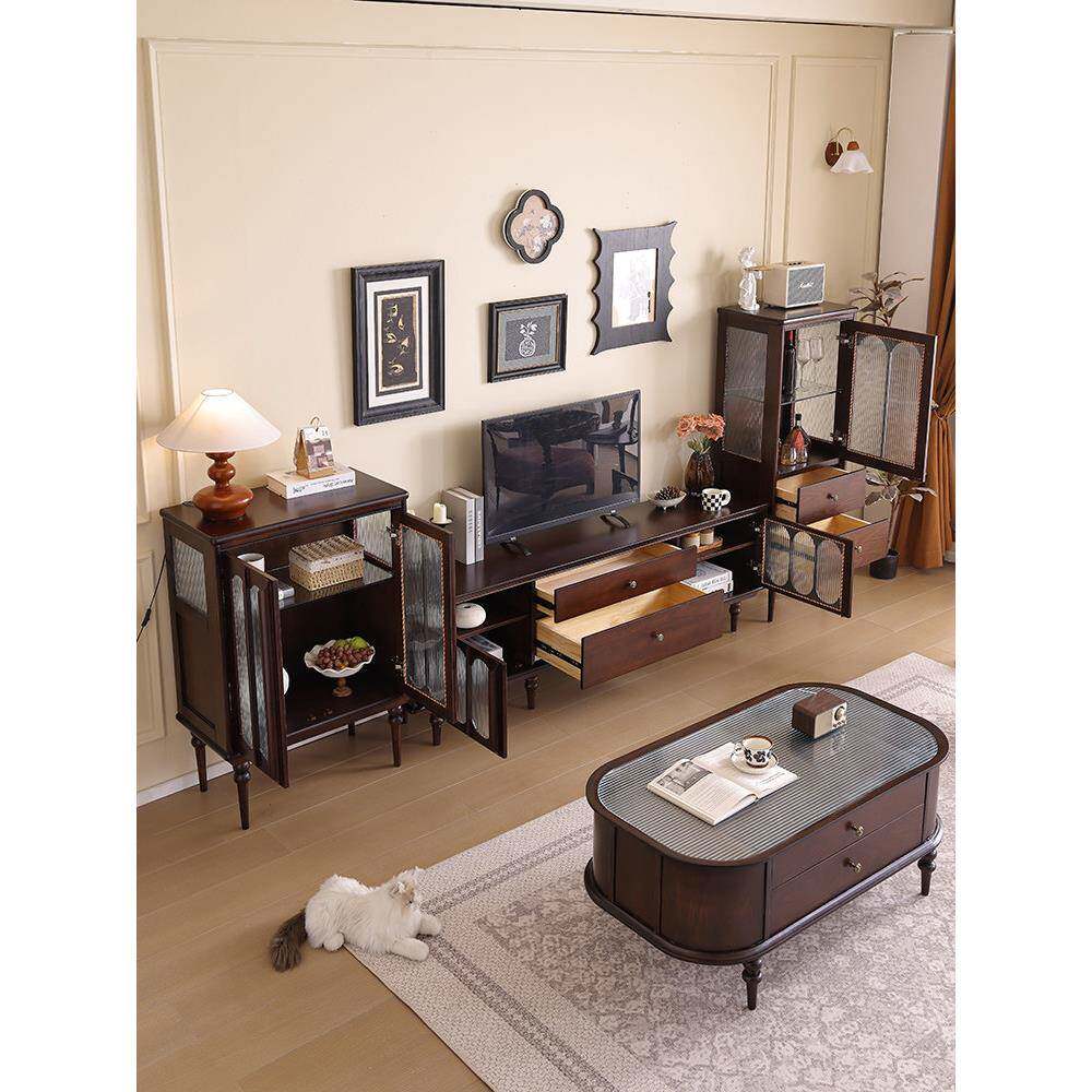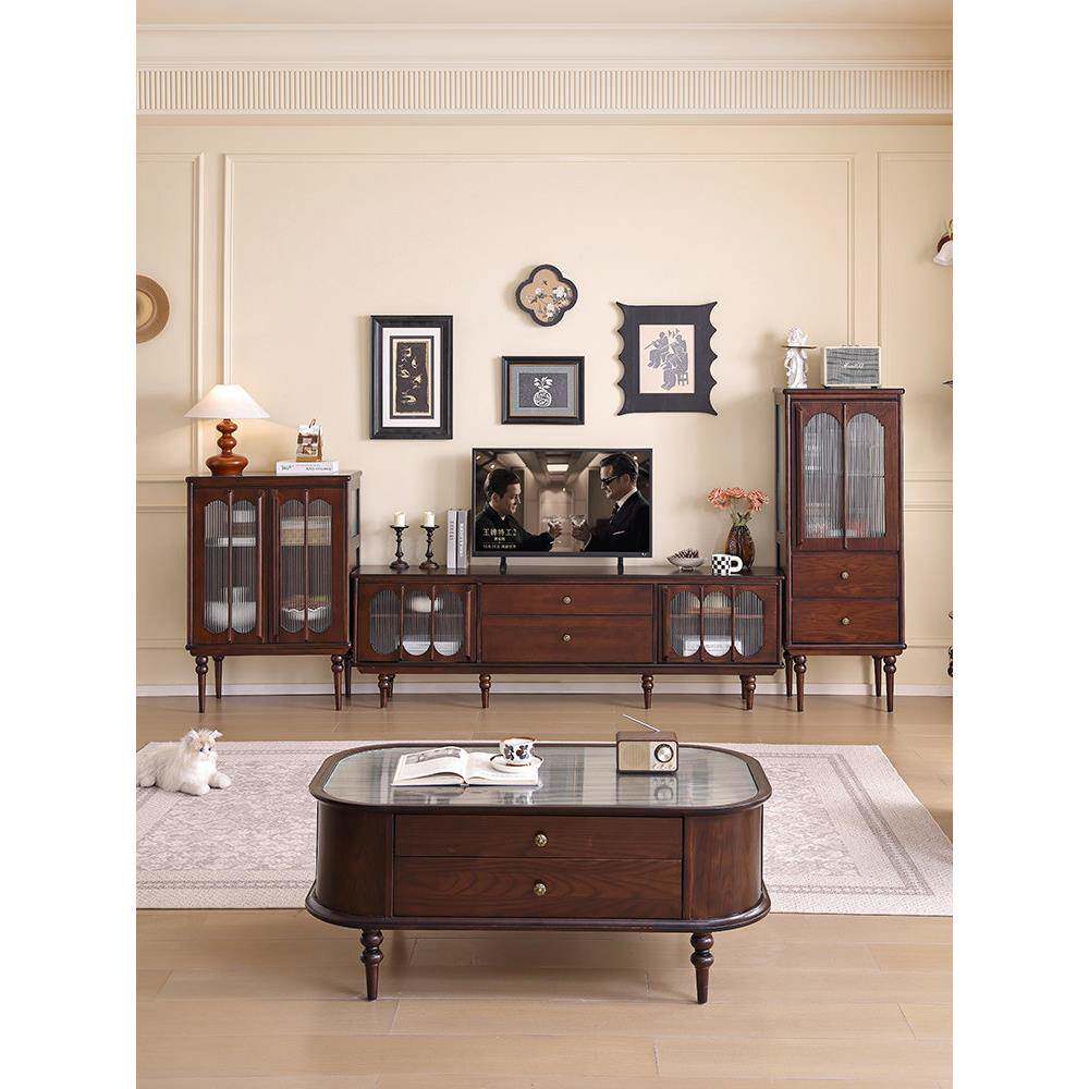 📚 中古风实木茶几电视柜组合客厅家用法式覆古高柜矮柜带边柜高低柜