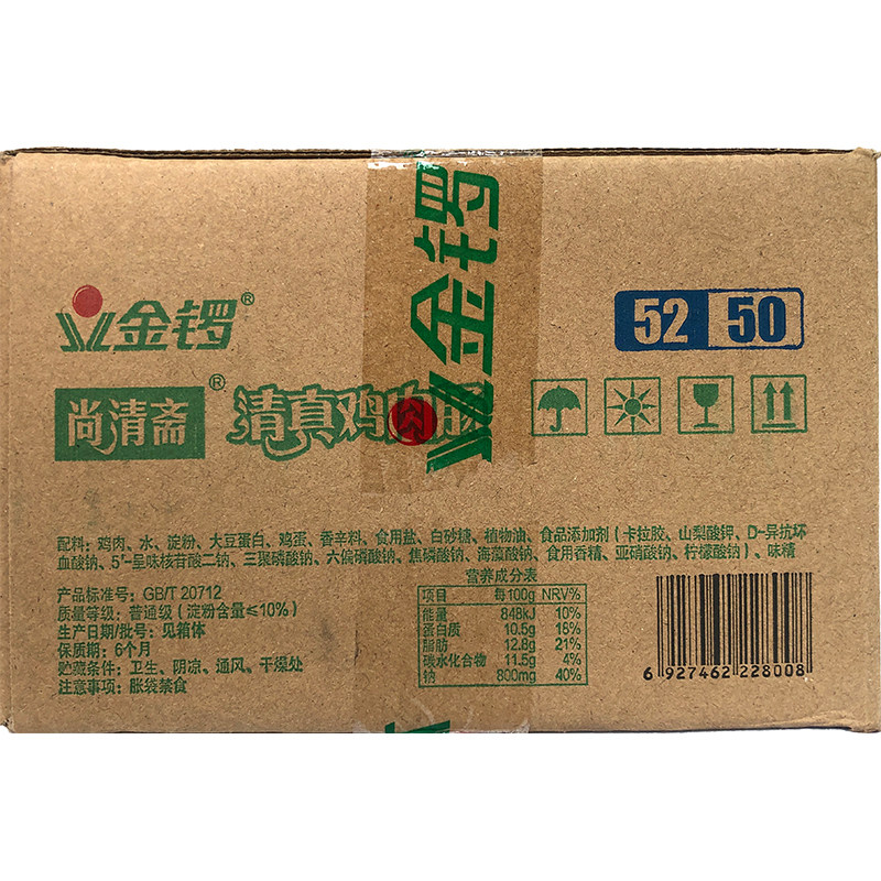 📚 金锣尚清斋清真鸡肉肠52g*50支整箱火腿肠即食香肠包装