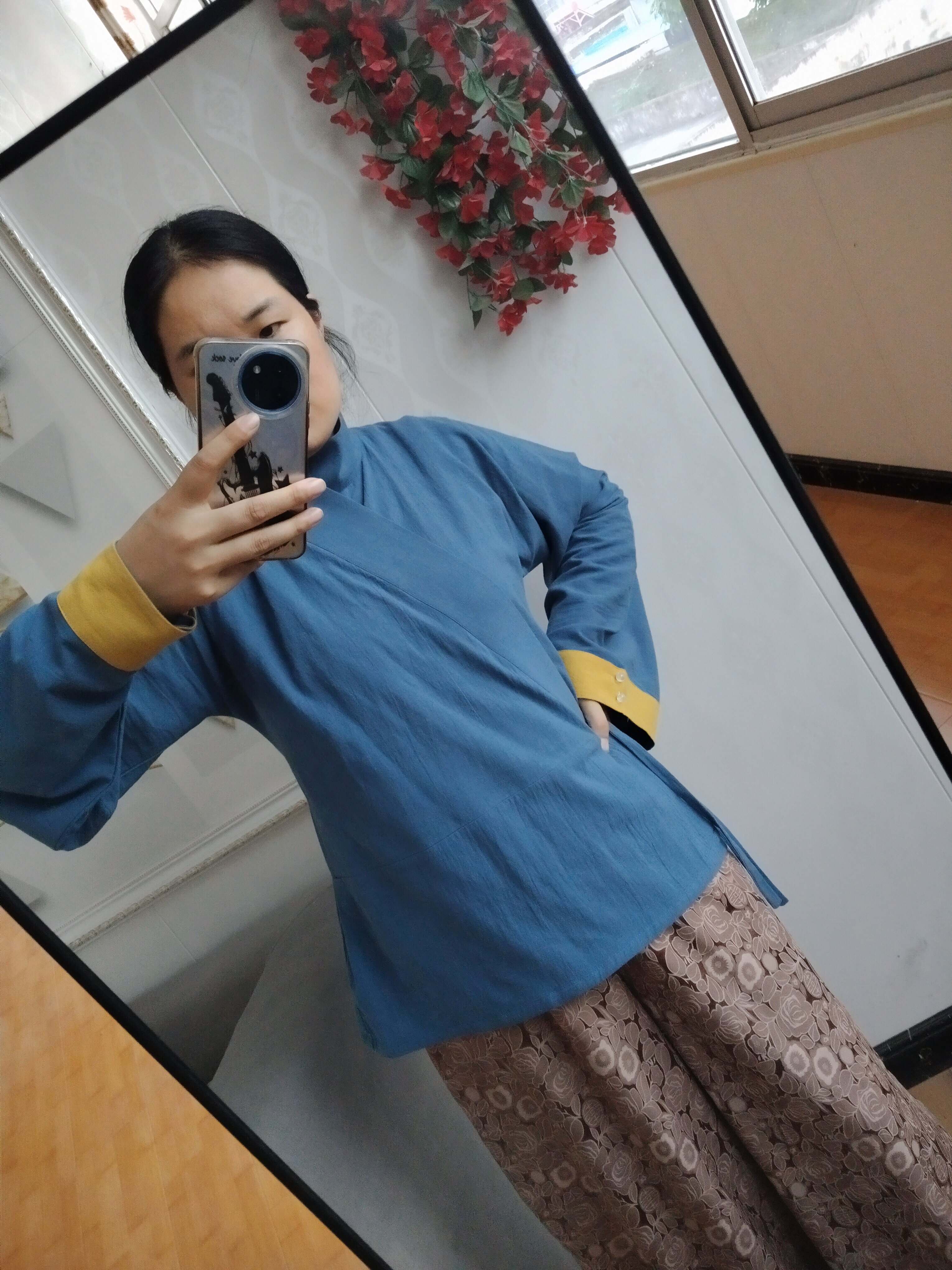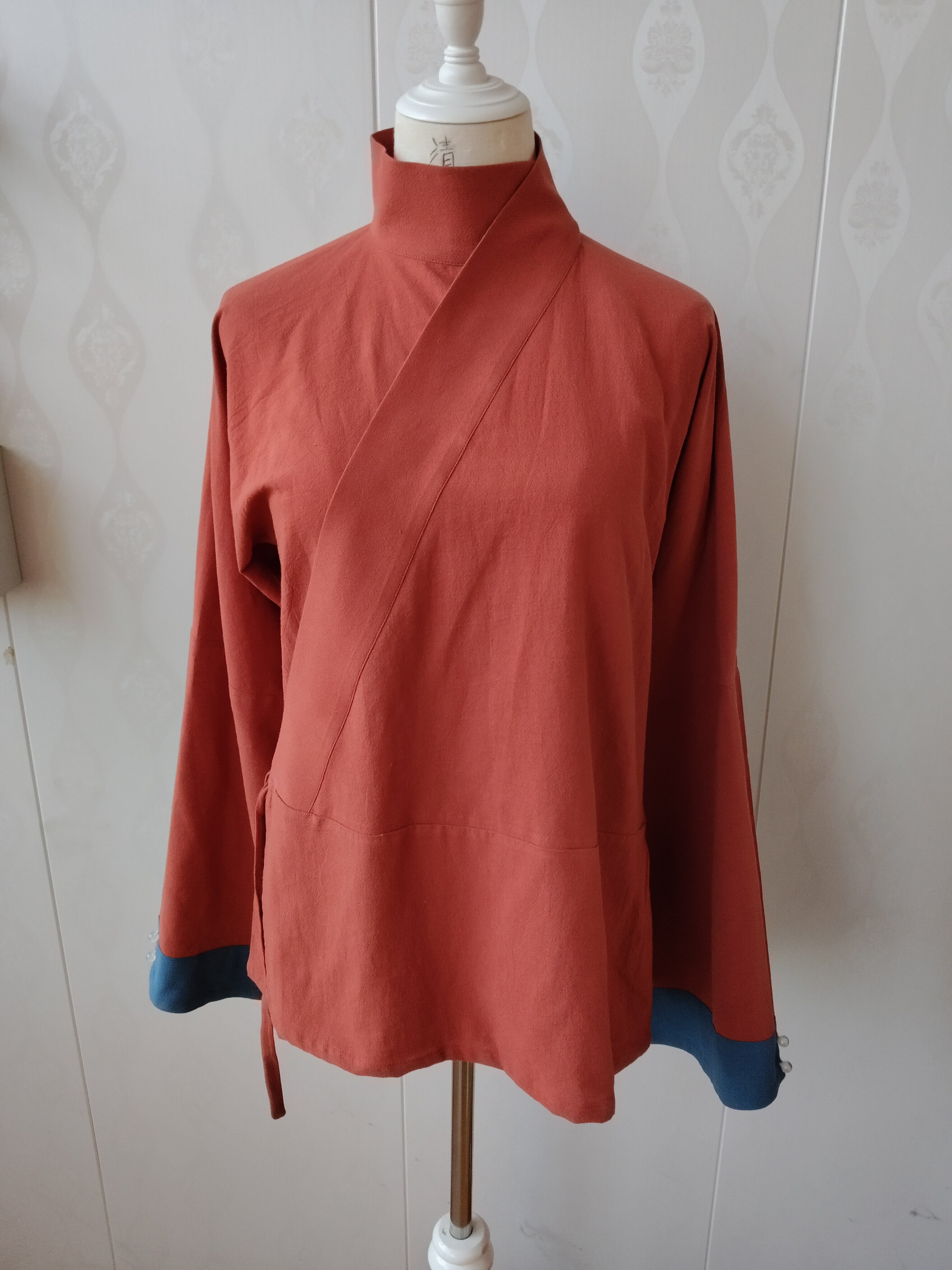 📚 遥知 魏晋风改良无前中缝纯棉曲领襦 袖口可收日常通勤百搭
