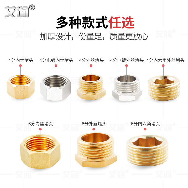 📚 4分三角阀堵头6分外丝内丝堵帽内六角四分管堵水管闷头管帽堵盖帽