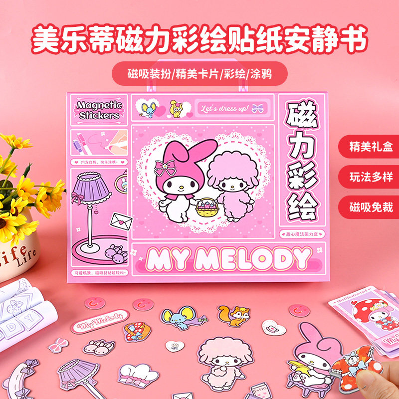 📚 三丽鸥磁力安静书美乐蒂磁吸免裁剪儿童3-6岁手工diy贴纸彩绘玩具