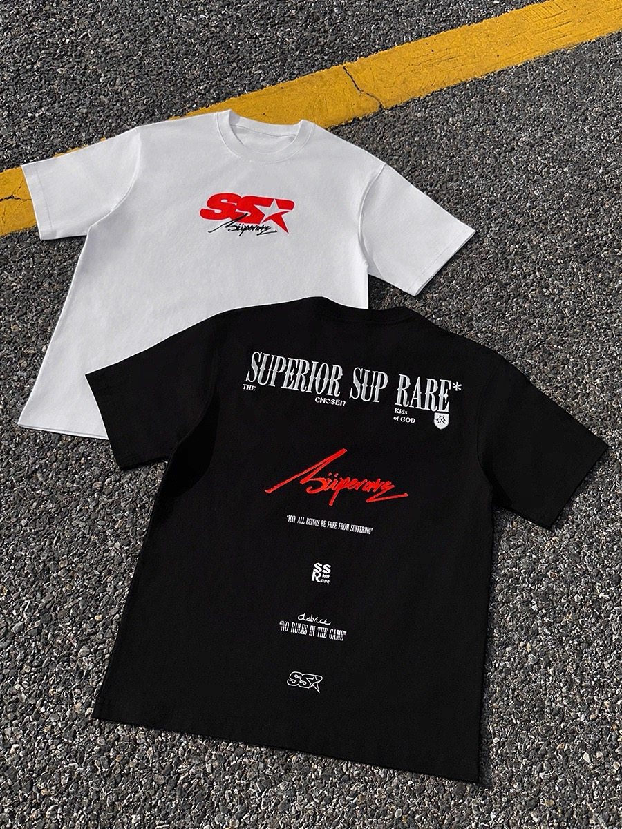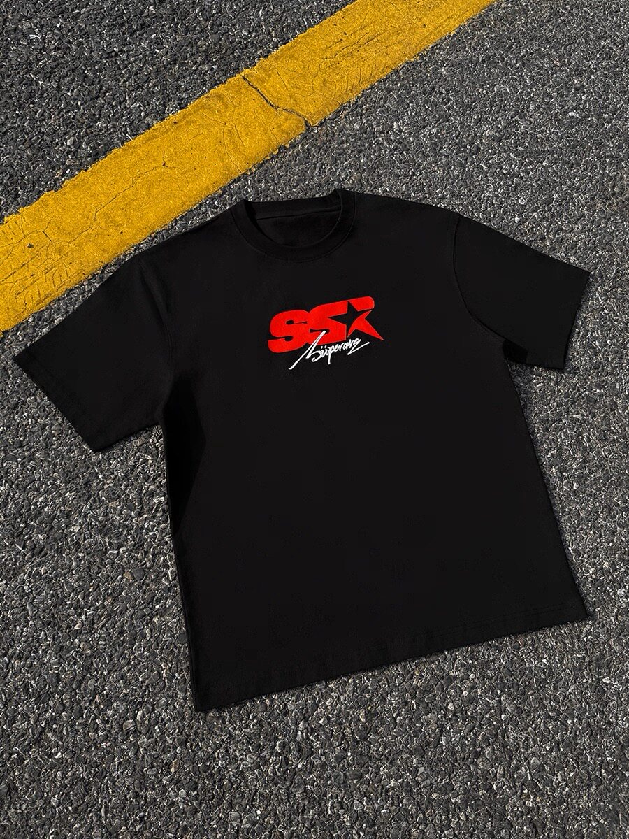 📚 现货现发 SSR红血手写字排版短袖T恤 美式复古街头国潮牌上衣男女