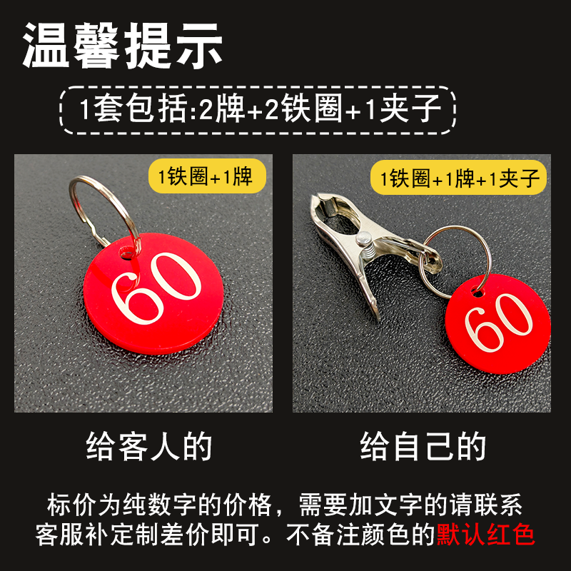📚 麻辣烫超市叫号寄存牌饭店餐饮取餐数字牌带夹子对号牌定制牌