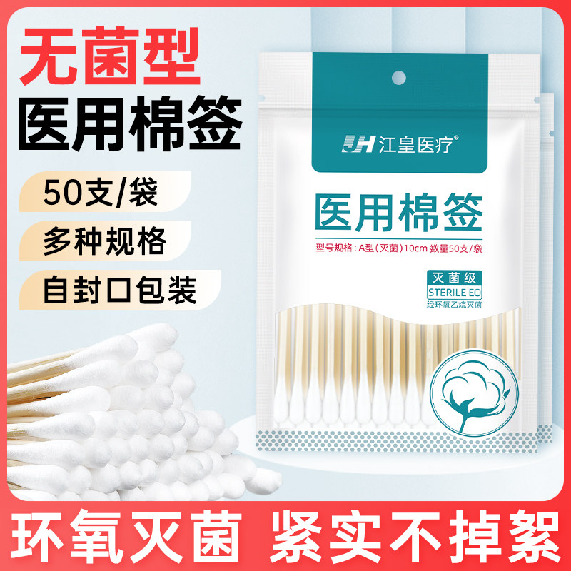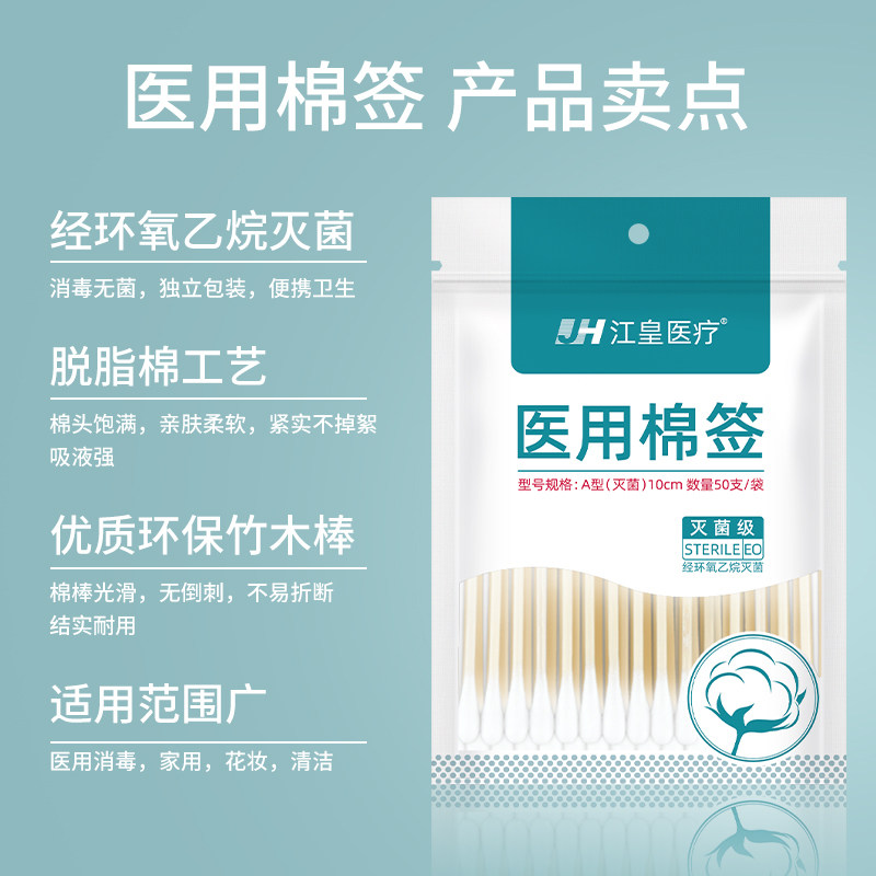 📚 医用棉签无菌医疗一次性消毒棉花棒单头掏耳朵化妆医用批发棉棒