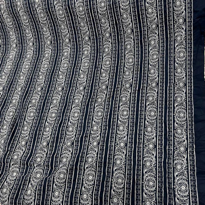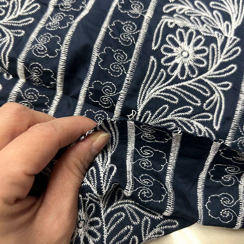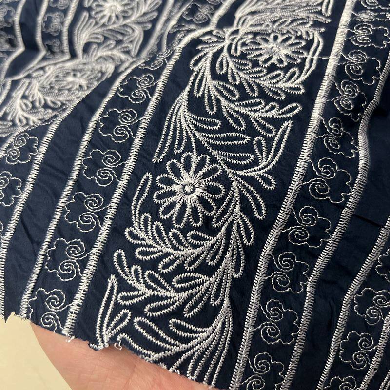 📚 全棉面料 春夏汉服连衣裙 藏青色底白色竖版花卉精致刺绣提花布料