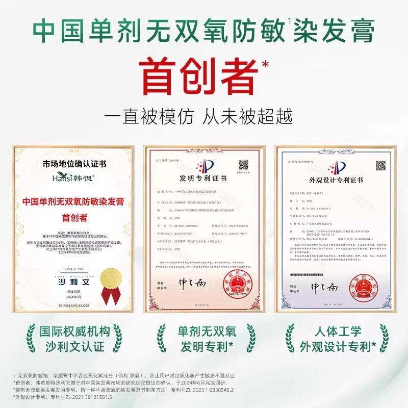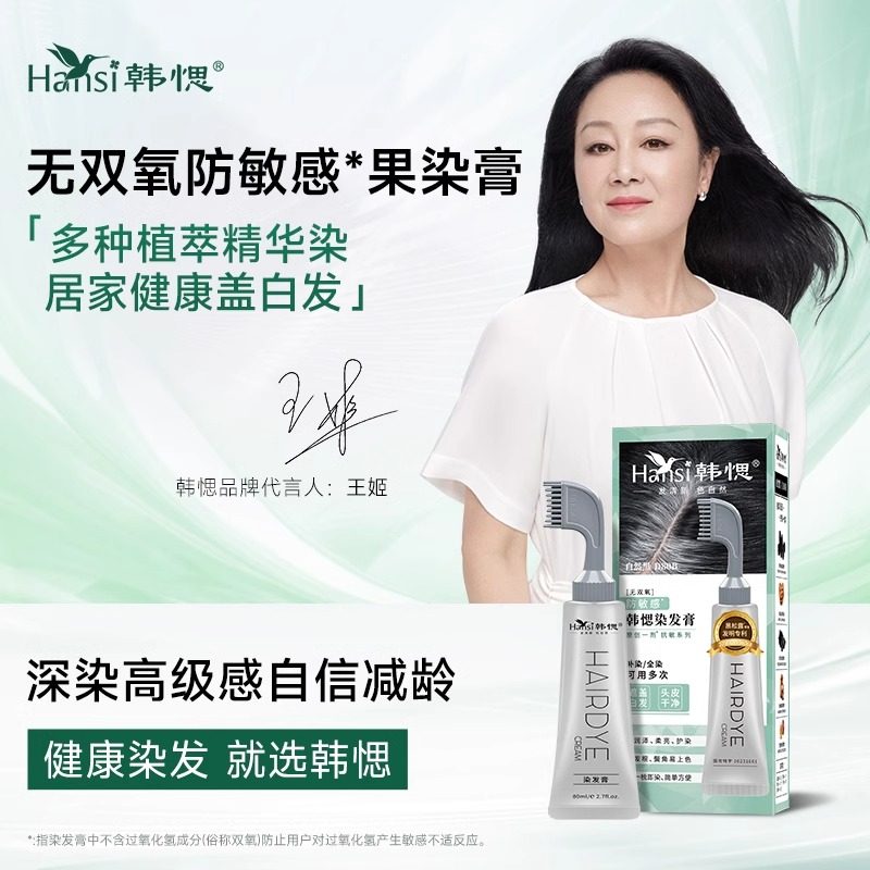 📚 韩愢植物染发旗舰店果染膏染发梳一梳黑纯遮白韩偲韩思天然染发剂
