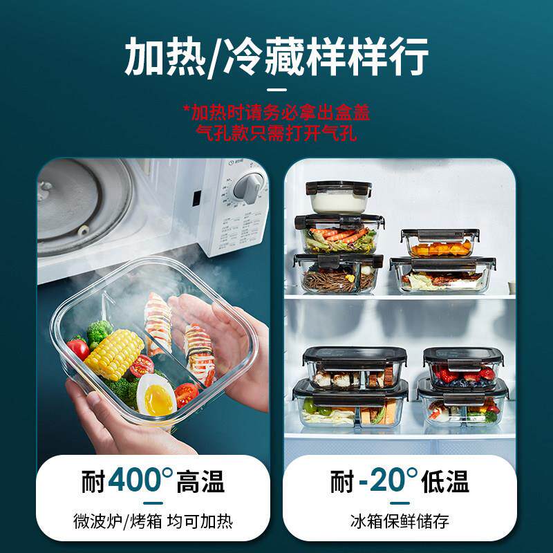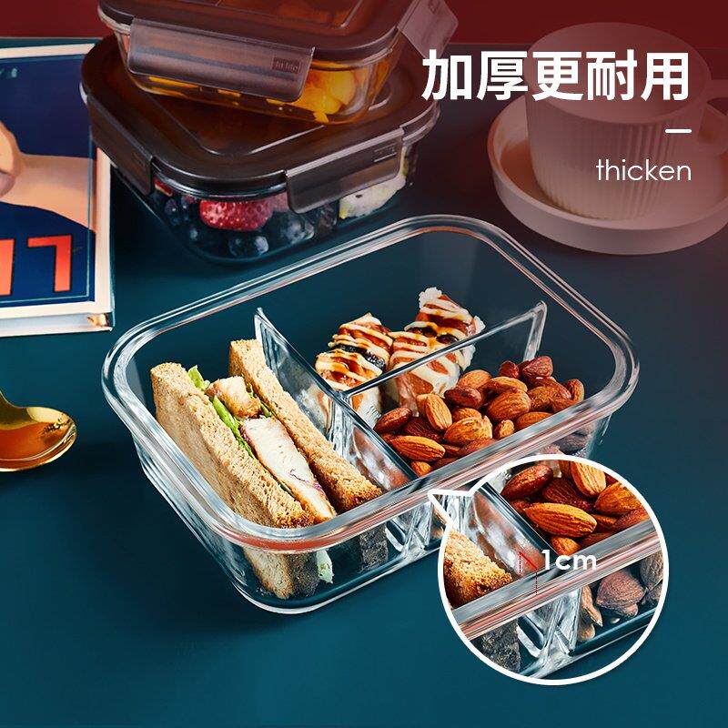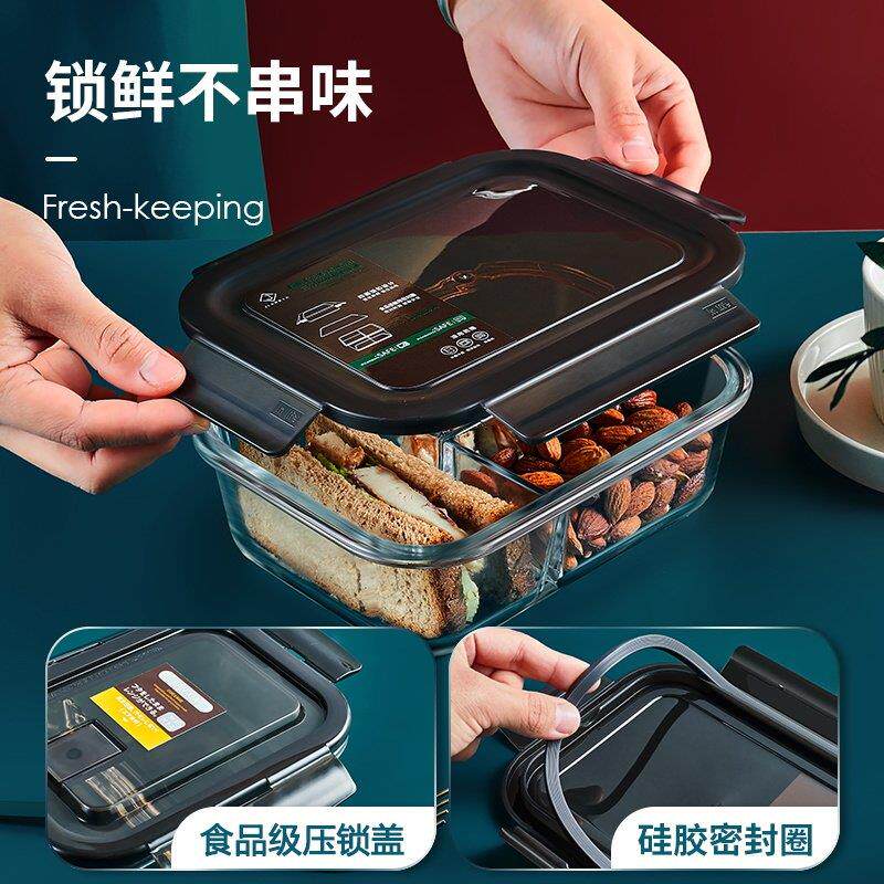 📚 玻璃饭盒高鹏硅密封保鲜盒分隔长方形微波炉加热日式便当盒耐高温