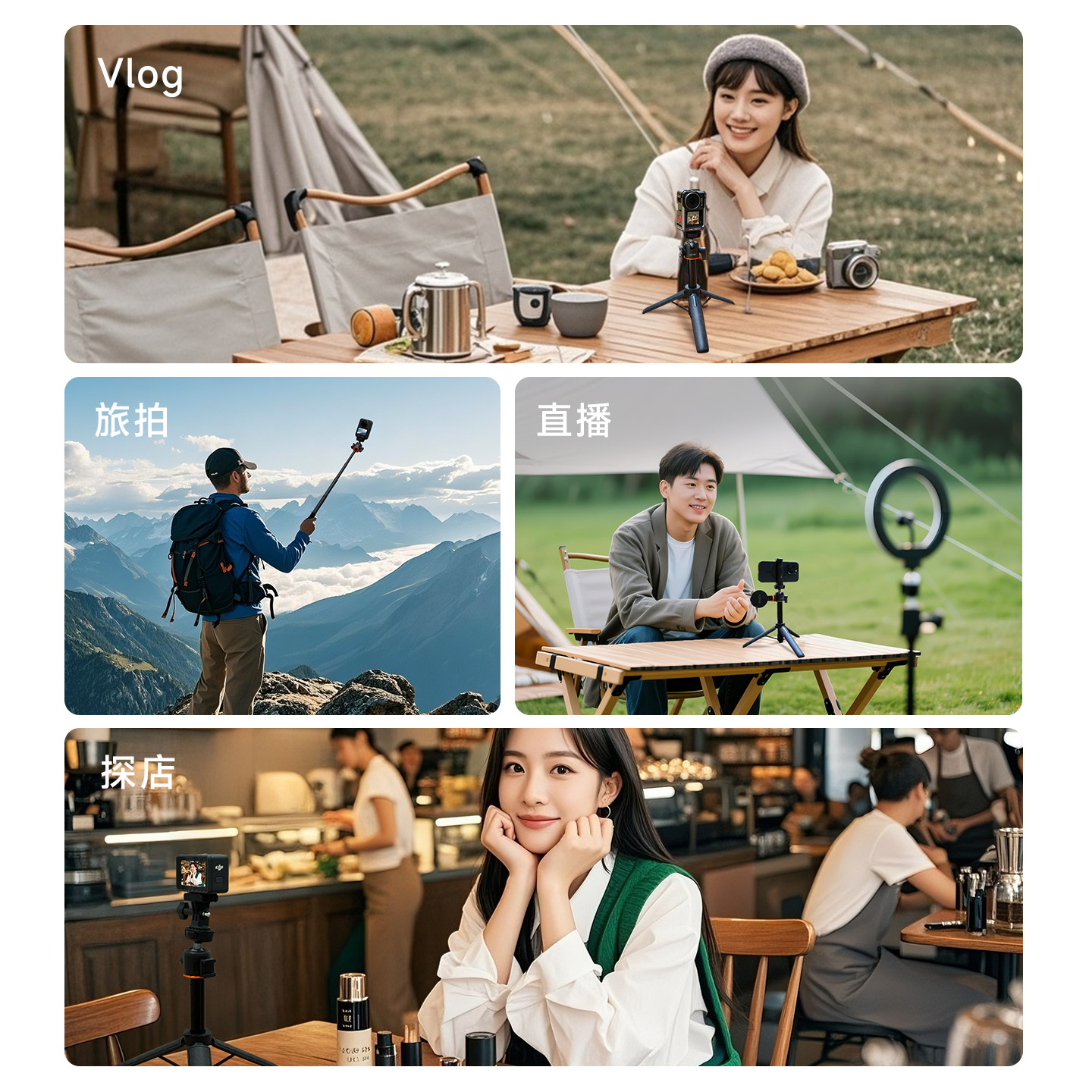 📚 LKTOP立可拓自拍杆落地三脚架适用大疆Action6/5Pro/4/Pocket3/影石Insta360 acepro2运动相机迷你手持延长杆