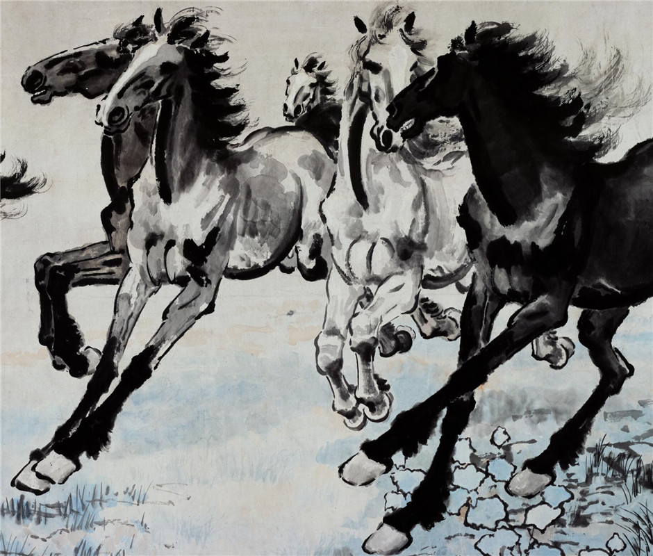 挂画奔马徐悲鸿图中马到成功