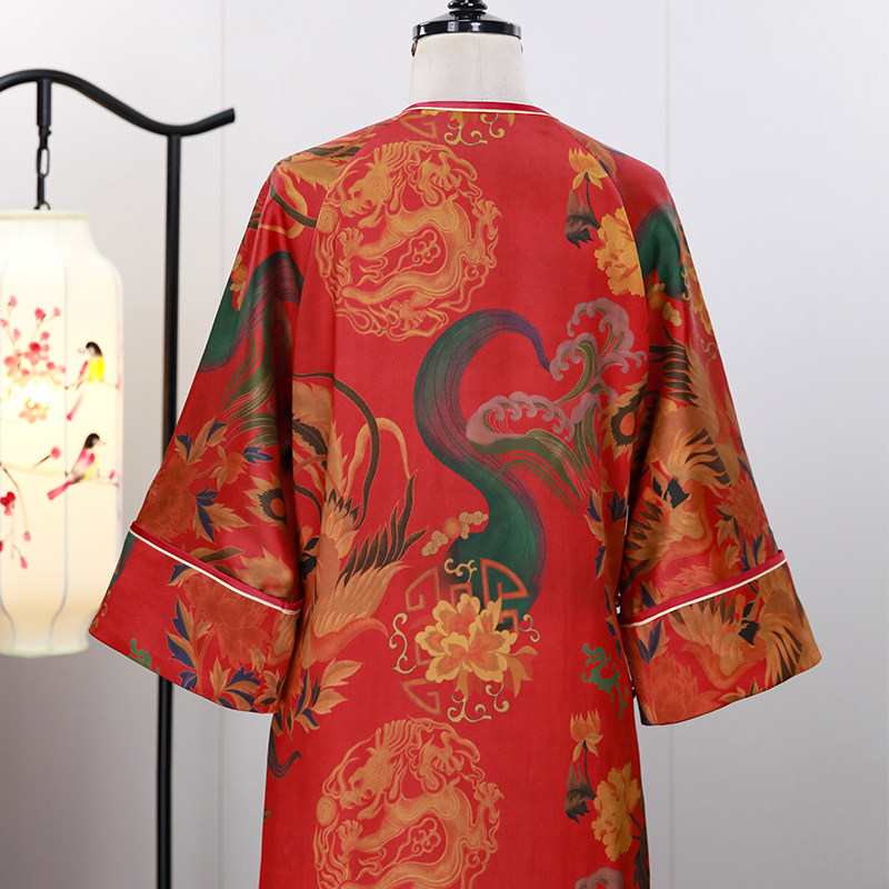 📚 红色芳华三重门40姆米重缎香云纱旗袍中式复古宽松袍子民国风长款
