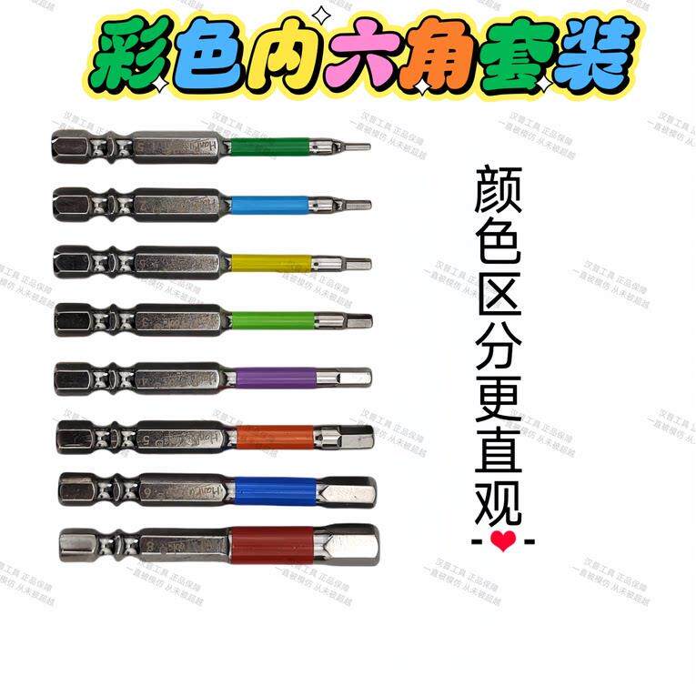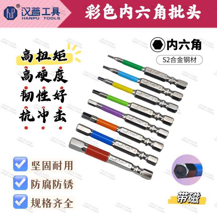 📚 汉普新升级彩色内六角批头带磁性电动螺丝起子起子头套装