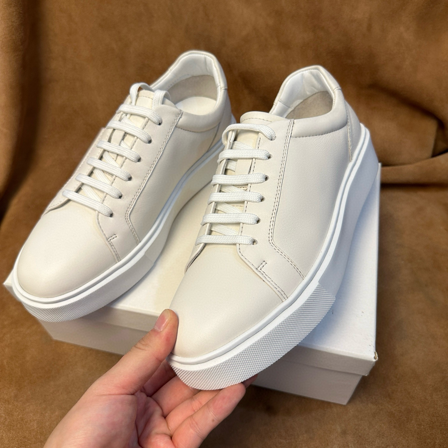 📚 断码36 38 40 43轻奢男士白色休闲运动鞋板鞋进口头层牛皮XL底D27