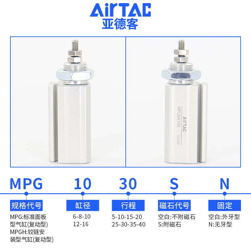 📚 原装亚德客面板型小型气缸MPG6/8/10/12/16X5X10X15X20X30X35X40S