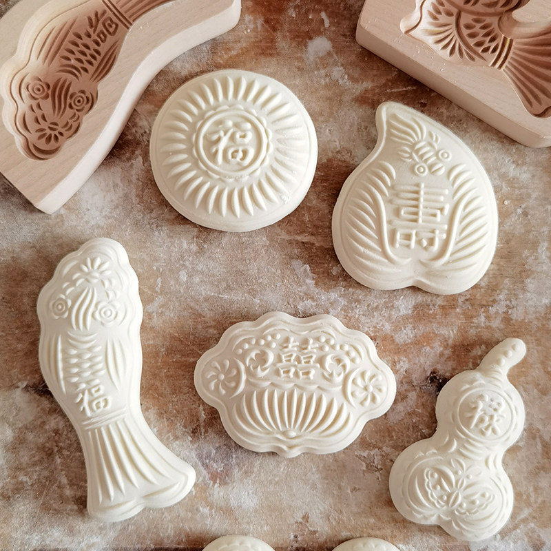 📚 过年加深花样蒸馒头包子月饼花饽饽木质卡子面食巧果模具