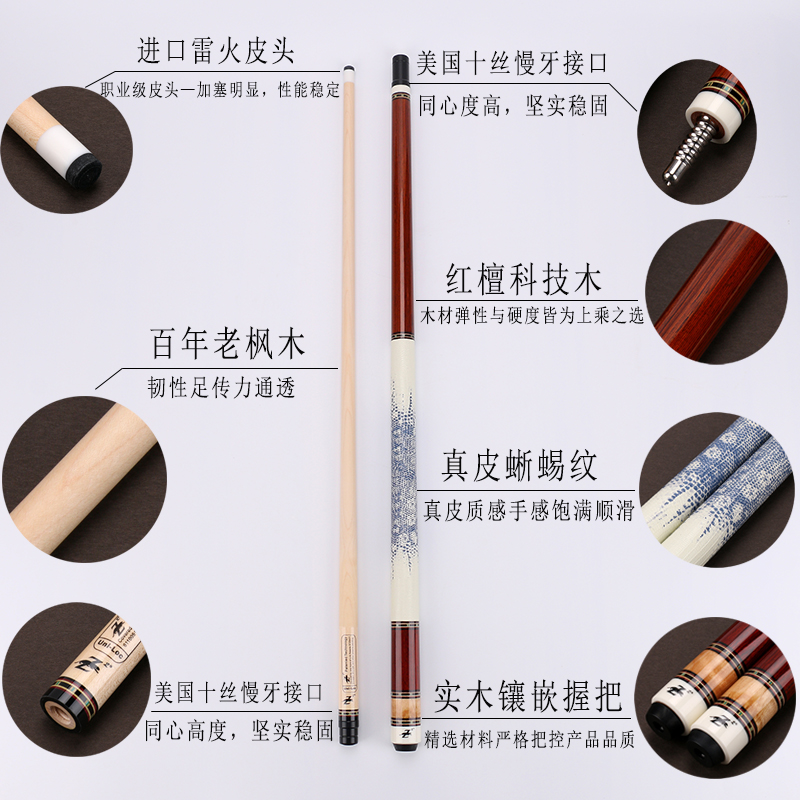 📚 Poinos美洲豹荣耀台球杆中头杆小头黑8桌球杆中式黑八大头九球杆