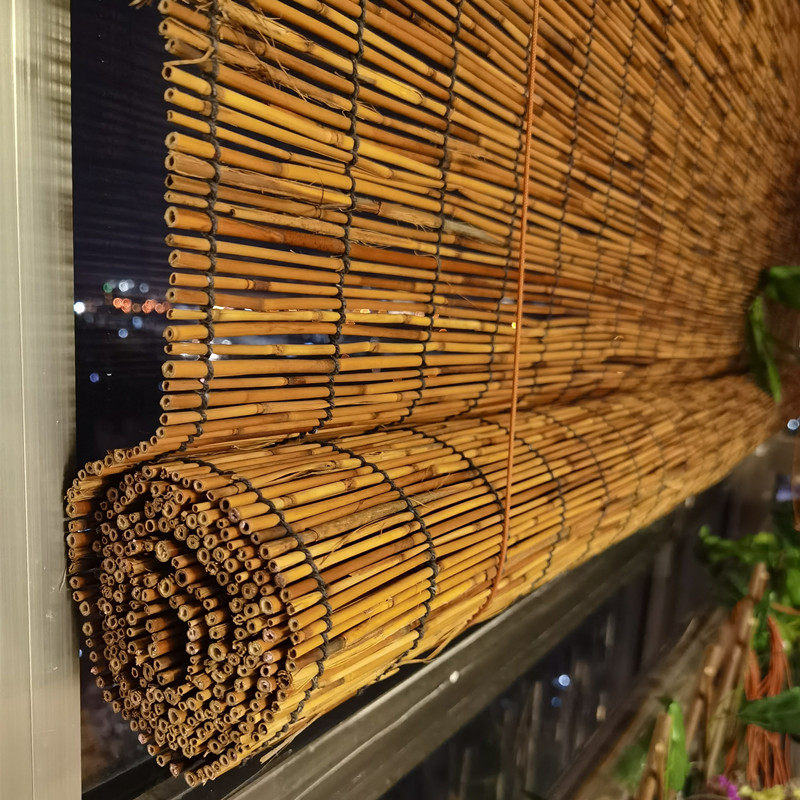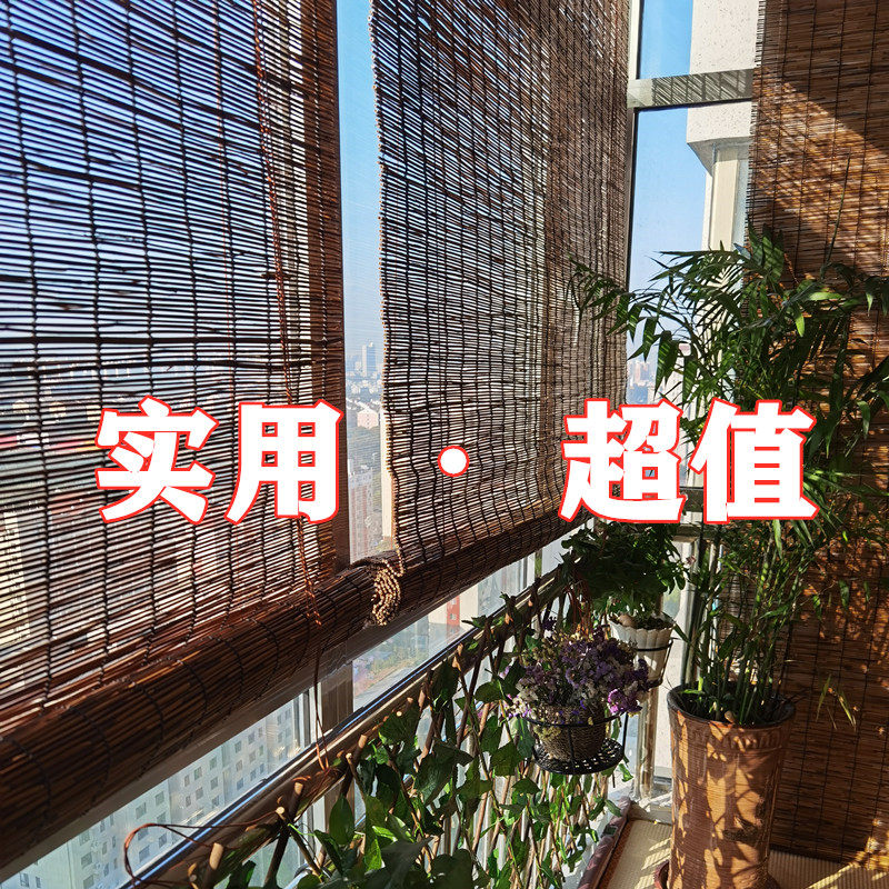 📚 芦苇帘子碳化复古禅意隔断背景墙吊顶中式装饰草帘子窗帘升降卷帘