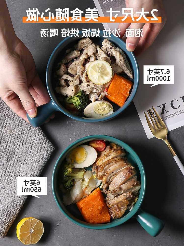 📚 Ceramic fruit salad bowl handle baking oven baked rice bowl