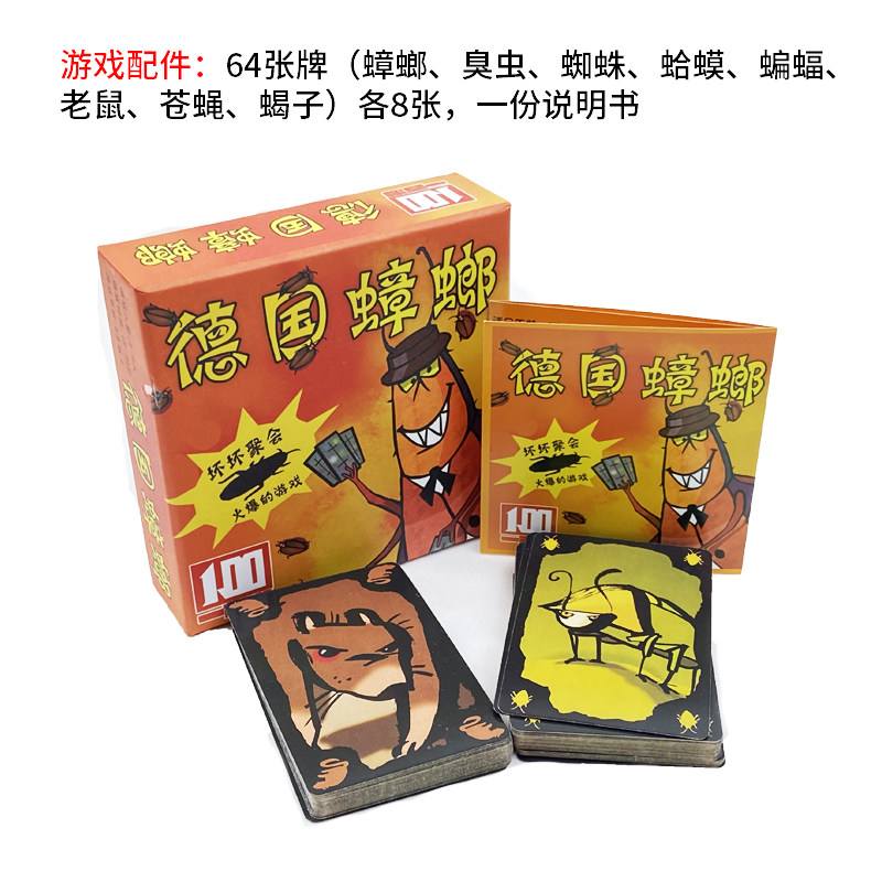 📚 桌游德国小强全套疯狂小强作弊飞蛾德国蟑螂色拉休闲聚会游戏卡牌