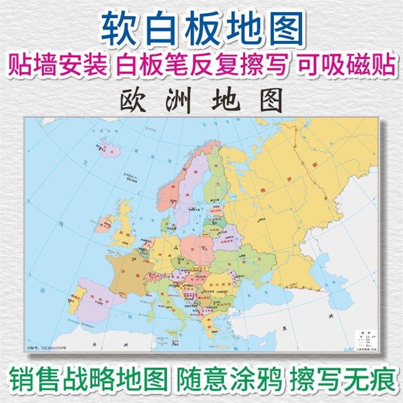 📚 贴墙安装可吸磁铁欧洲地图可擦写软白板墙贴销售战略市场占有率
