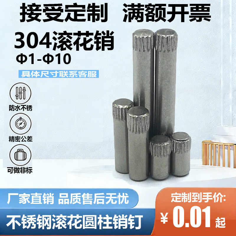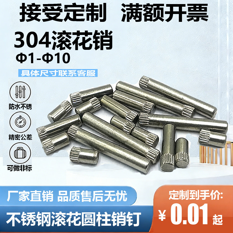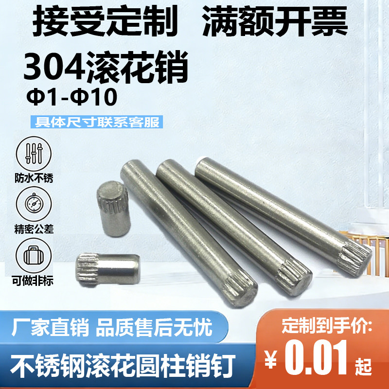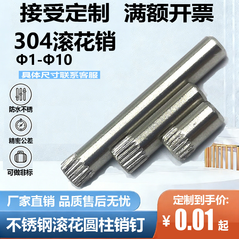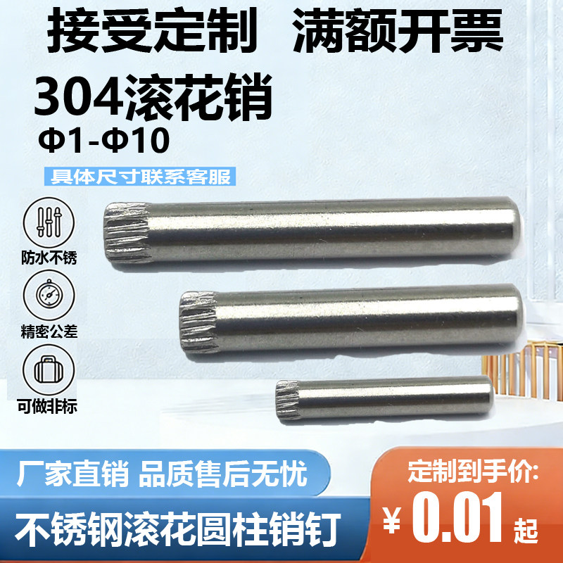 📚 V304滚花销不锈钢搓花轴定位销钉单头滚丝订做非标Φ1-Φ10网纹轴