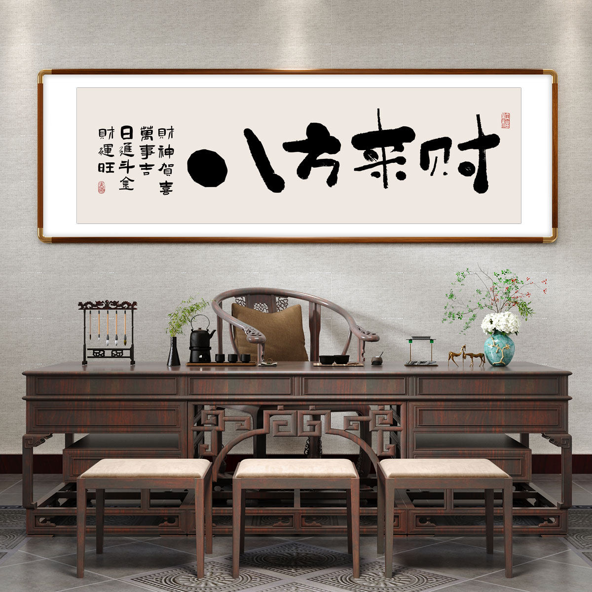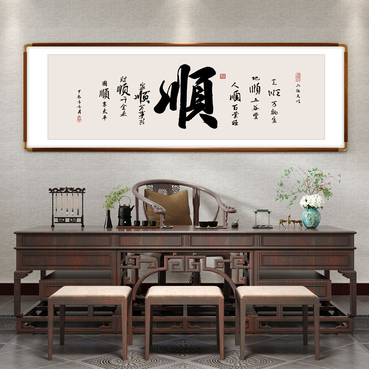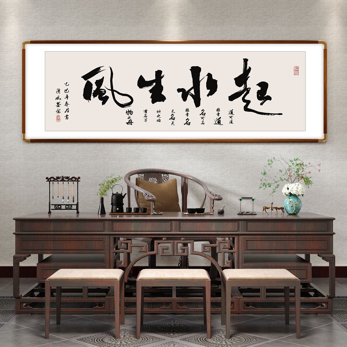 📚 横幅书法挂画新中式客厅山水风景装饰画办公室字画沙发背景墙壁画