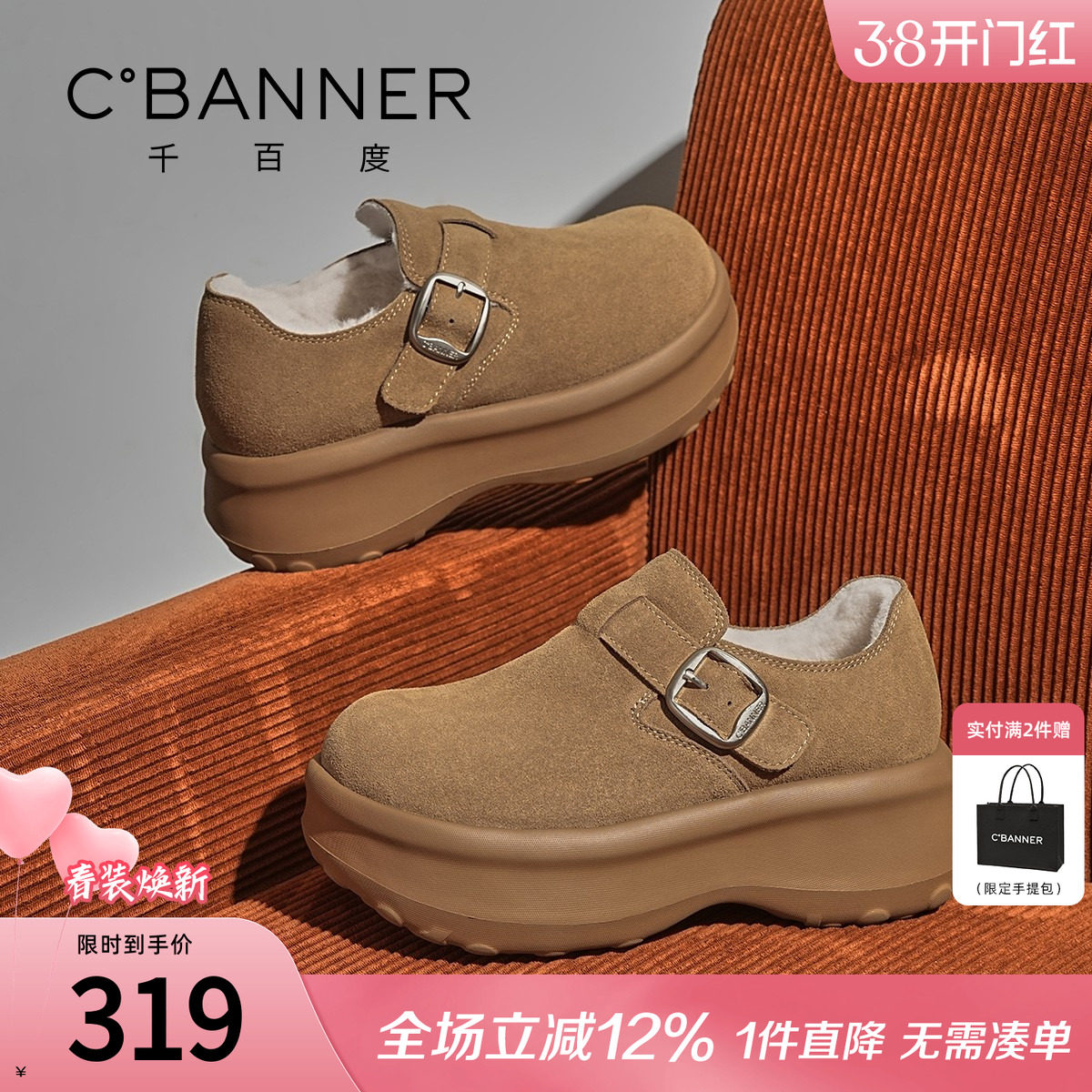 📚 千百度厚底加绒勃肯鞋女秋冬2025新款外穿棉鞋增高乐福鞋百搭单鞋