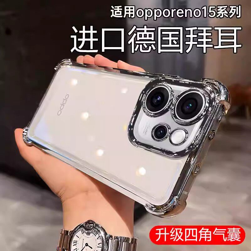 📚 适用opporeno15c手机壳新款四角气囊reno15pro保护套oppoReno14外壳透明reno13/12/11镜头10全包防摔电镀外壳