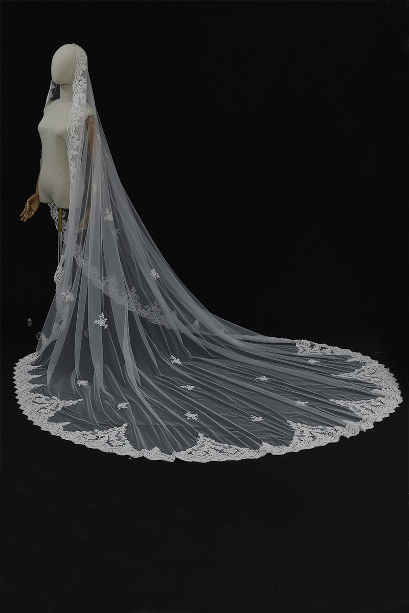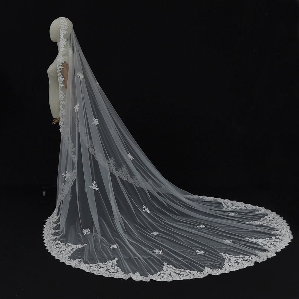 📚 韩式新娘蕾丝头纱长款拖地主婚纱仪式大拖尾复古头饰森系拍照道具