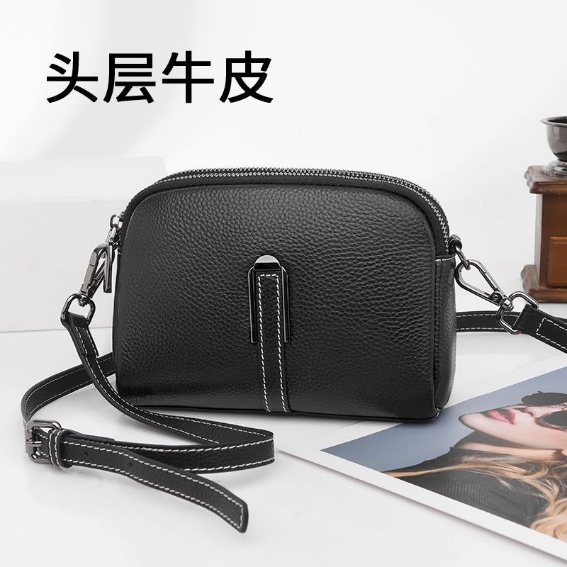 📚 真皮女包2025新款时尚百搭双拉链多层软牛皮斜挎包女士单肩小包包