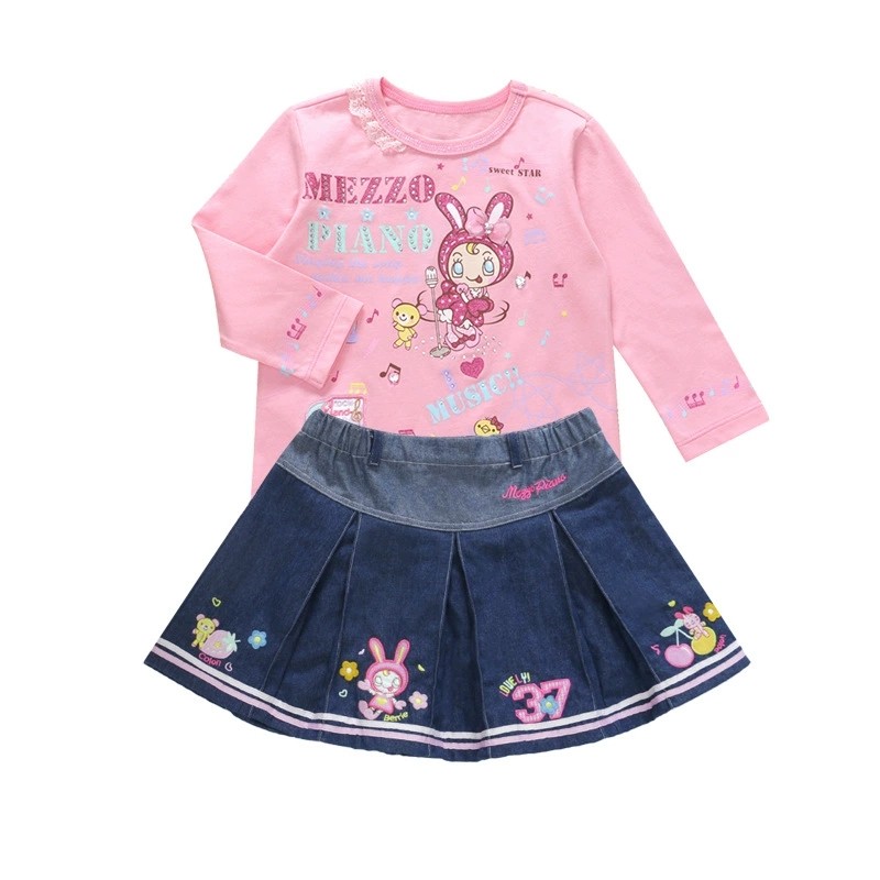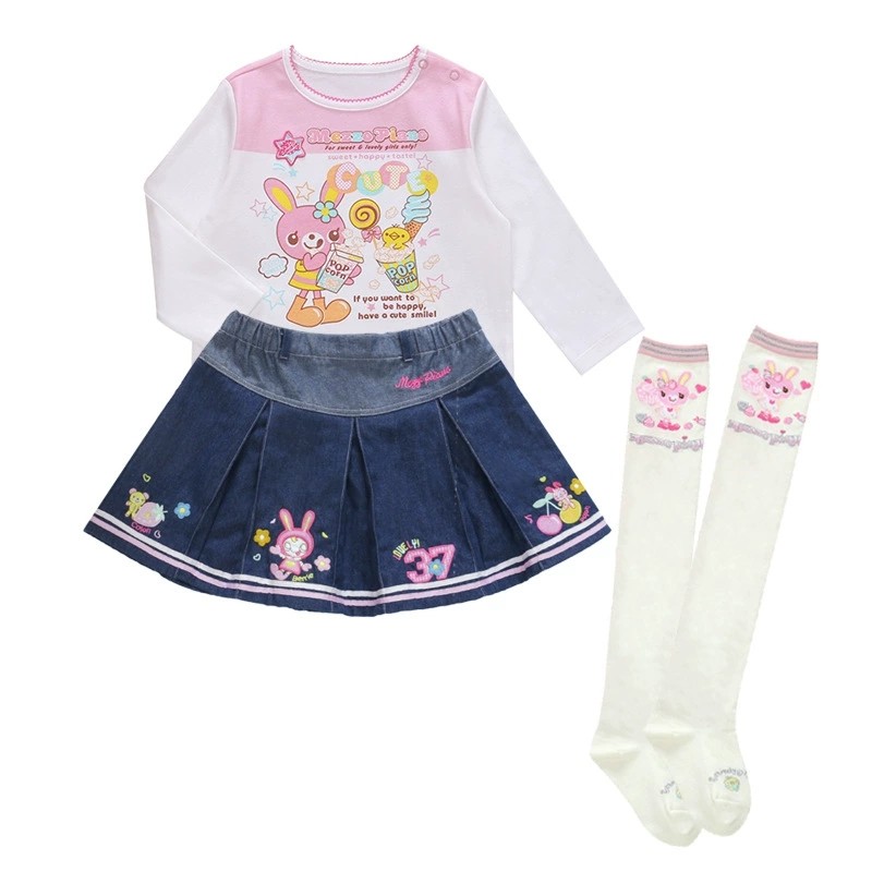 📚 mezzopiano钢琴家mp可爱软妹卡通牛仔短裙甜美百褶裙女儿服女童装