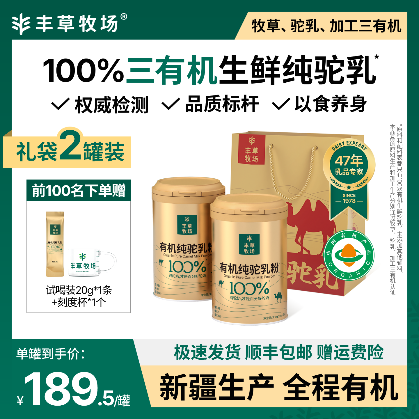 📚 过年送礼长辈丰草牧场新疆正宗100%三有机纯驼乳粉骆驼奶粉旗舰店
