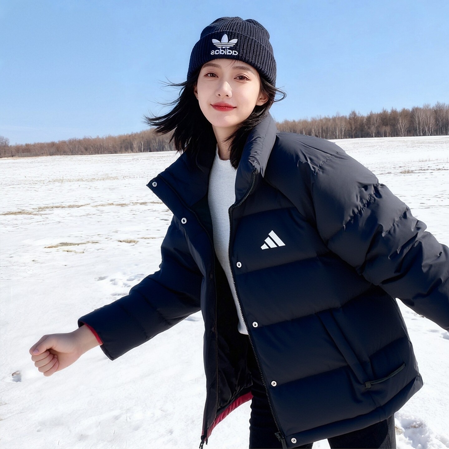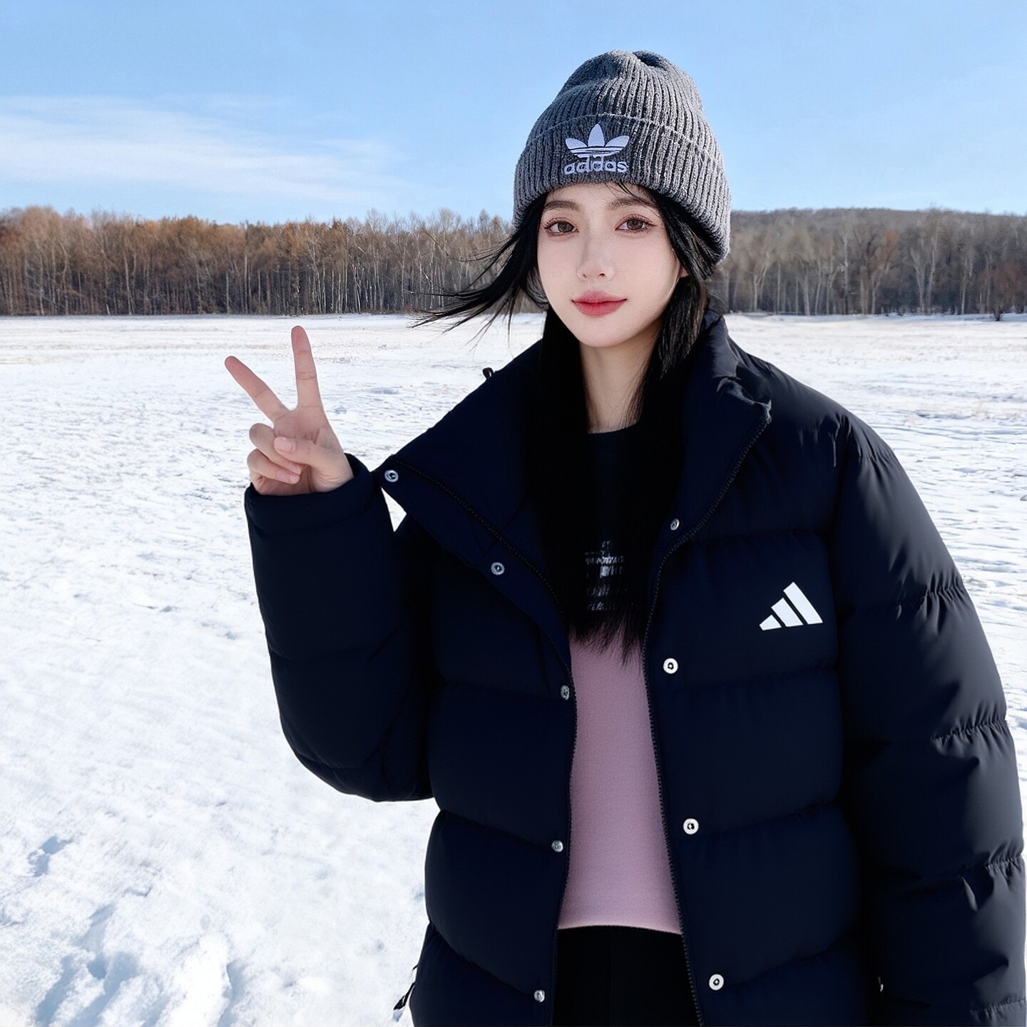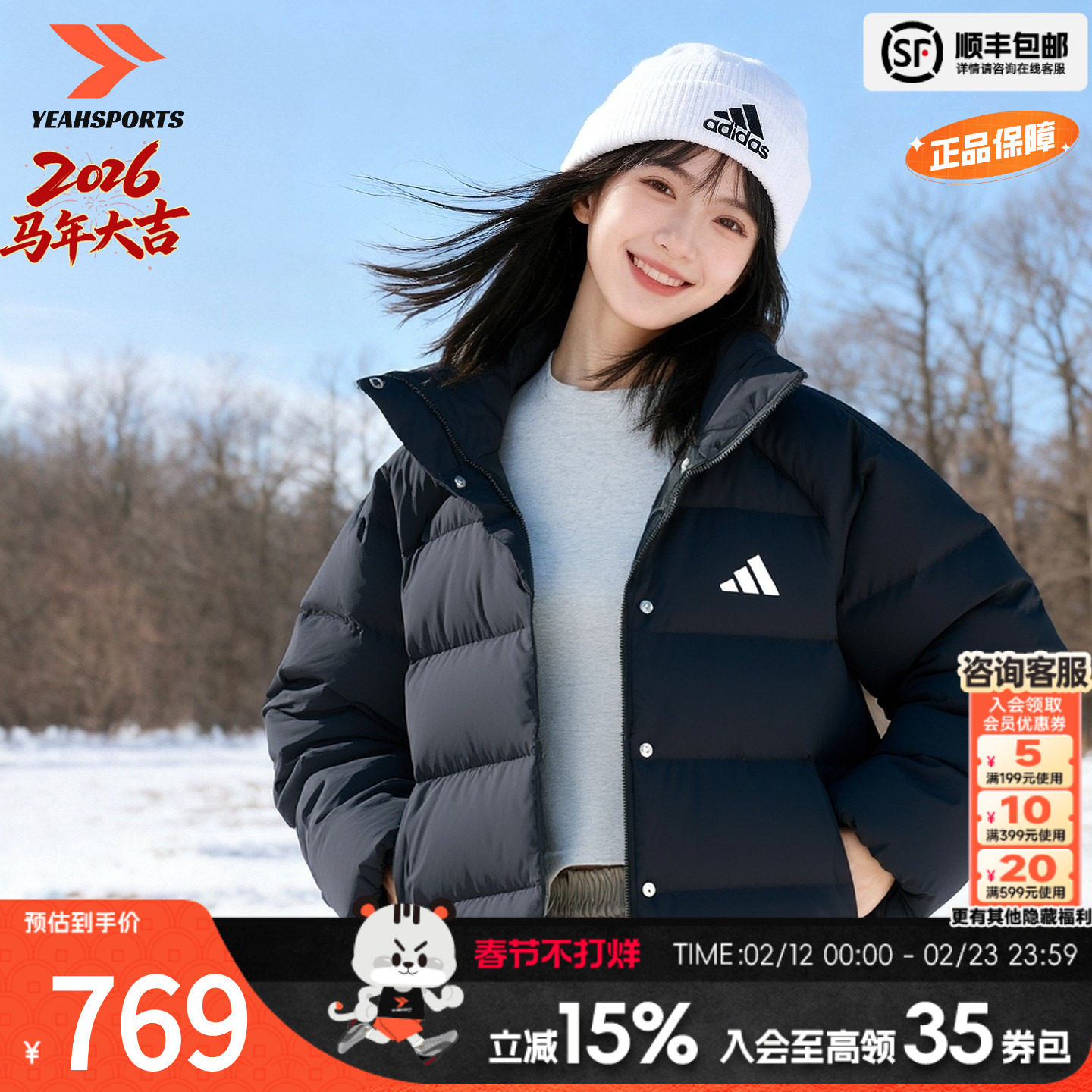 📚 阿迪达斯排骨羽绒服女装2026春季新款运动服黑色鸭绒立领保暖外套