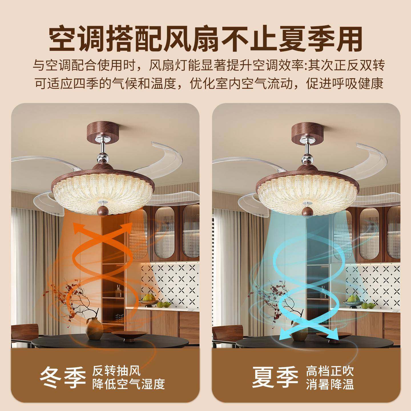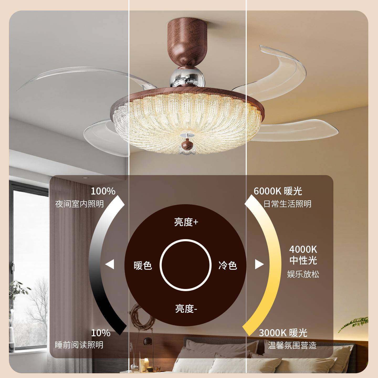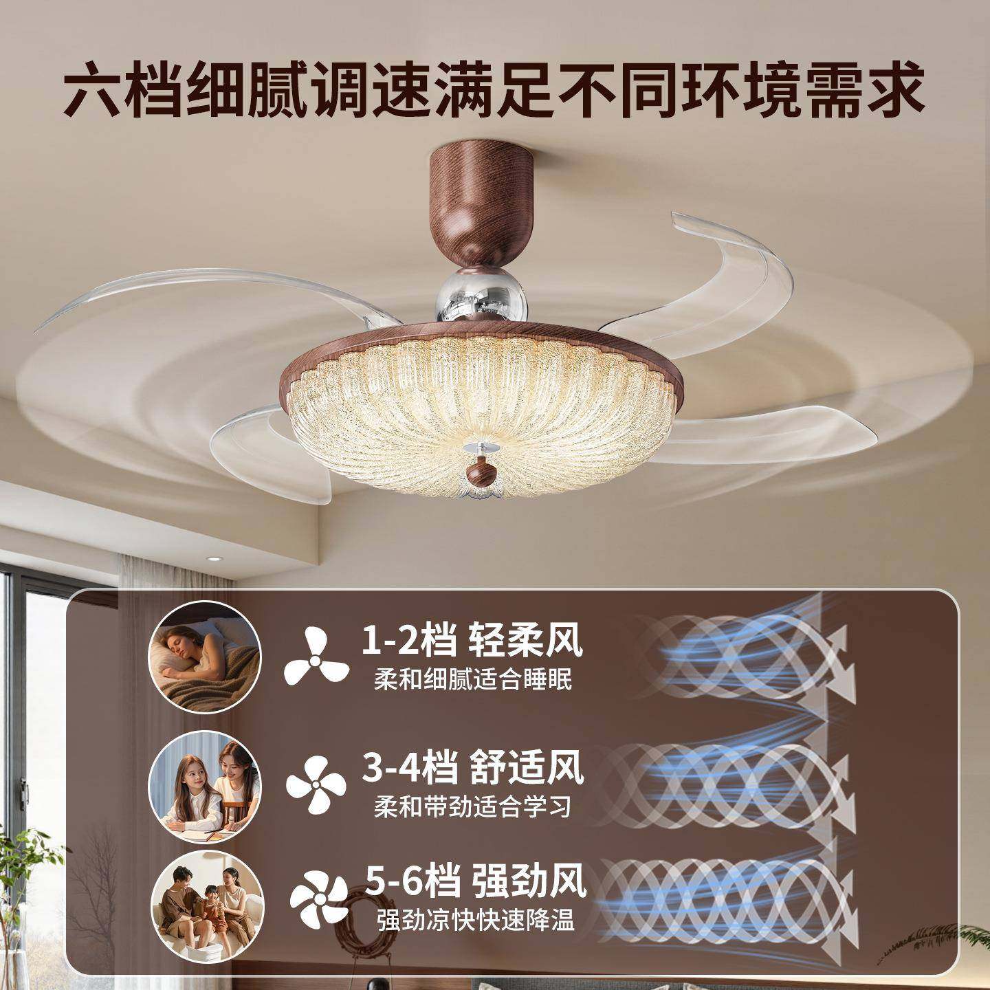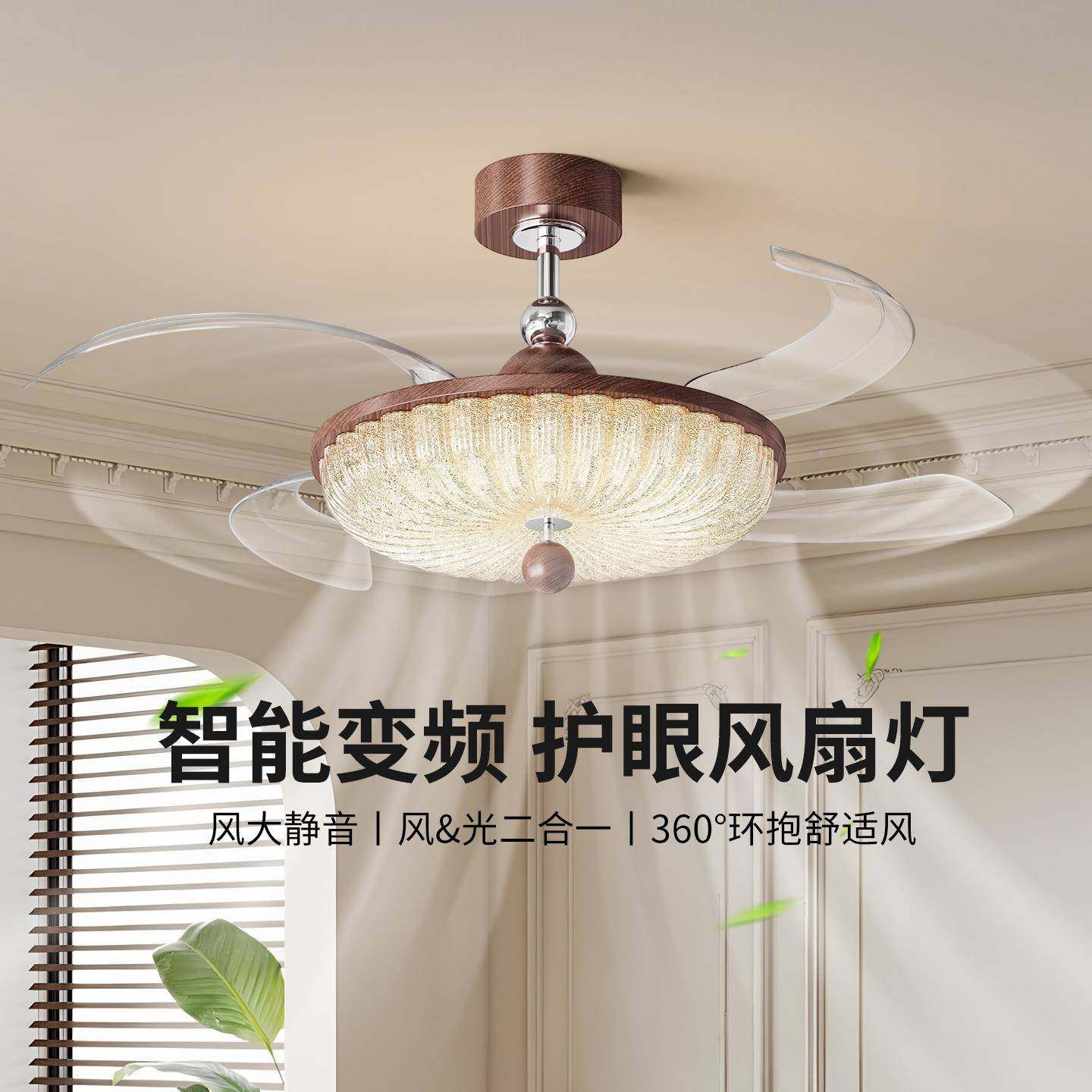 📚 法式复古隐形风扇灯吊扇灯中古风卧室电扇灯家用餐厅一体风扇灯