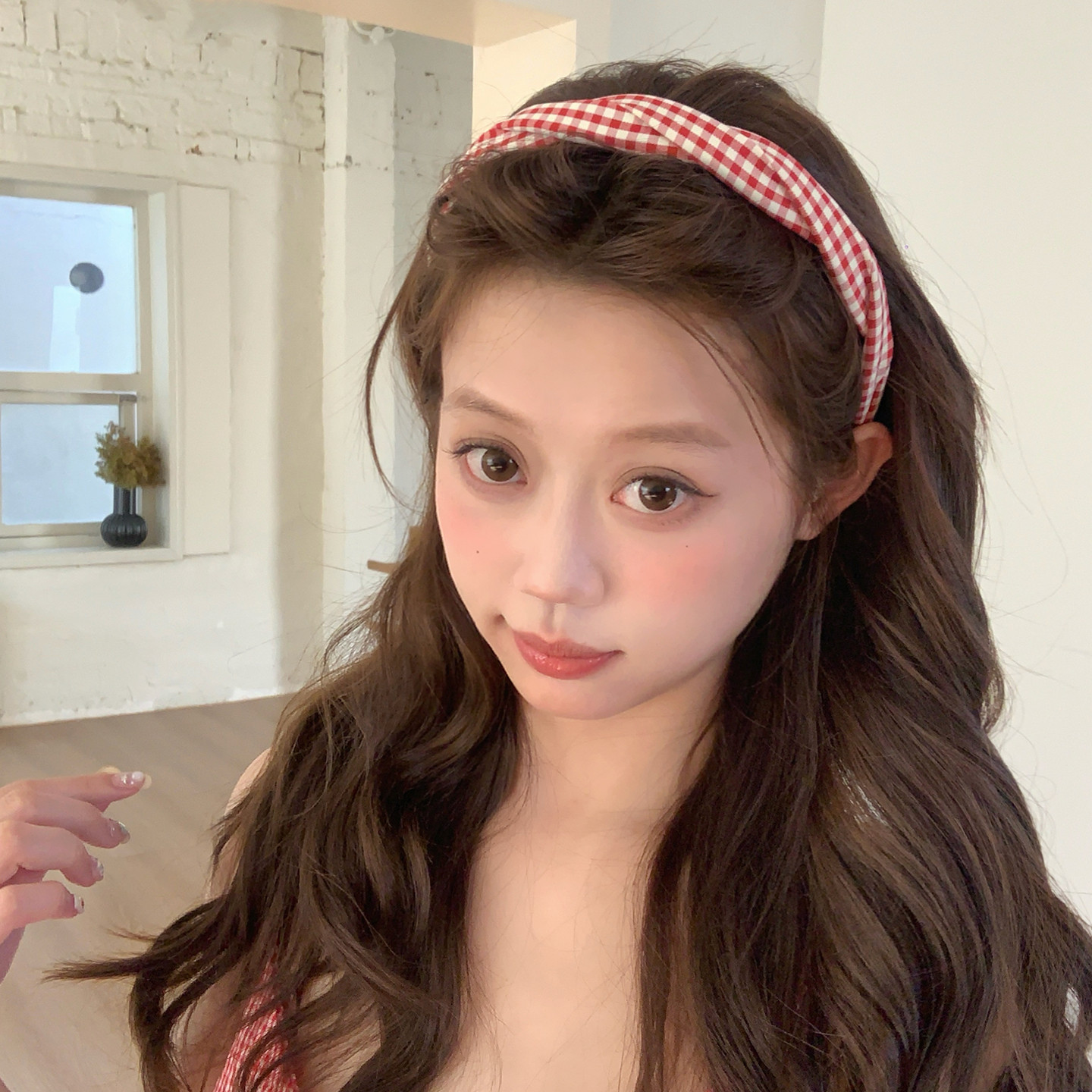 📚 韩系格子麻花窄版发箍带齿防滑高颅顶头箍外戴压发发卡少女感发饰